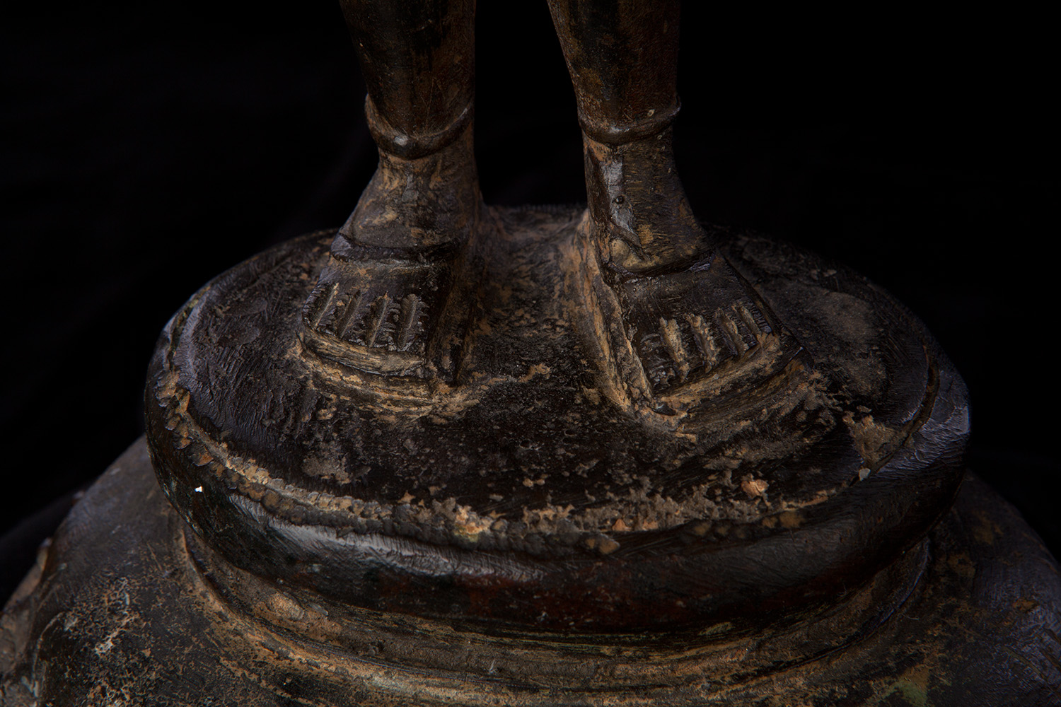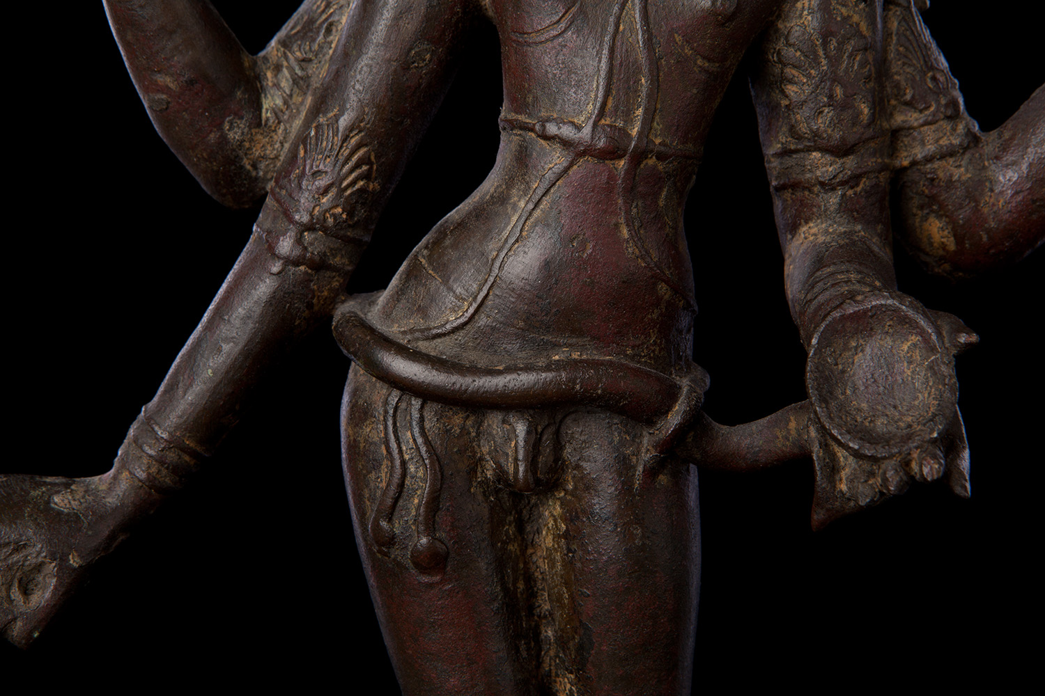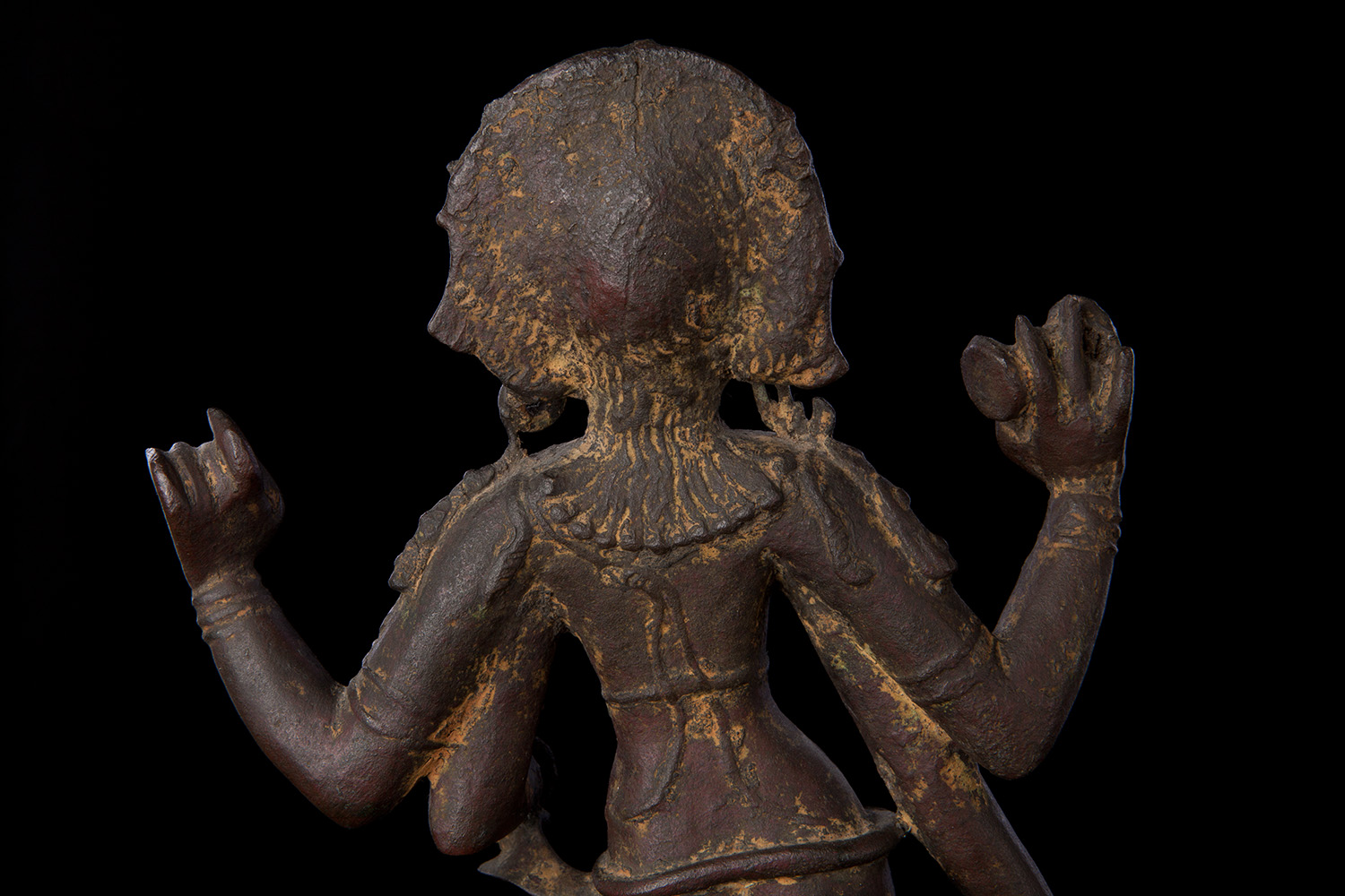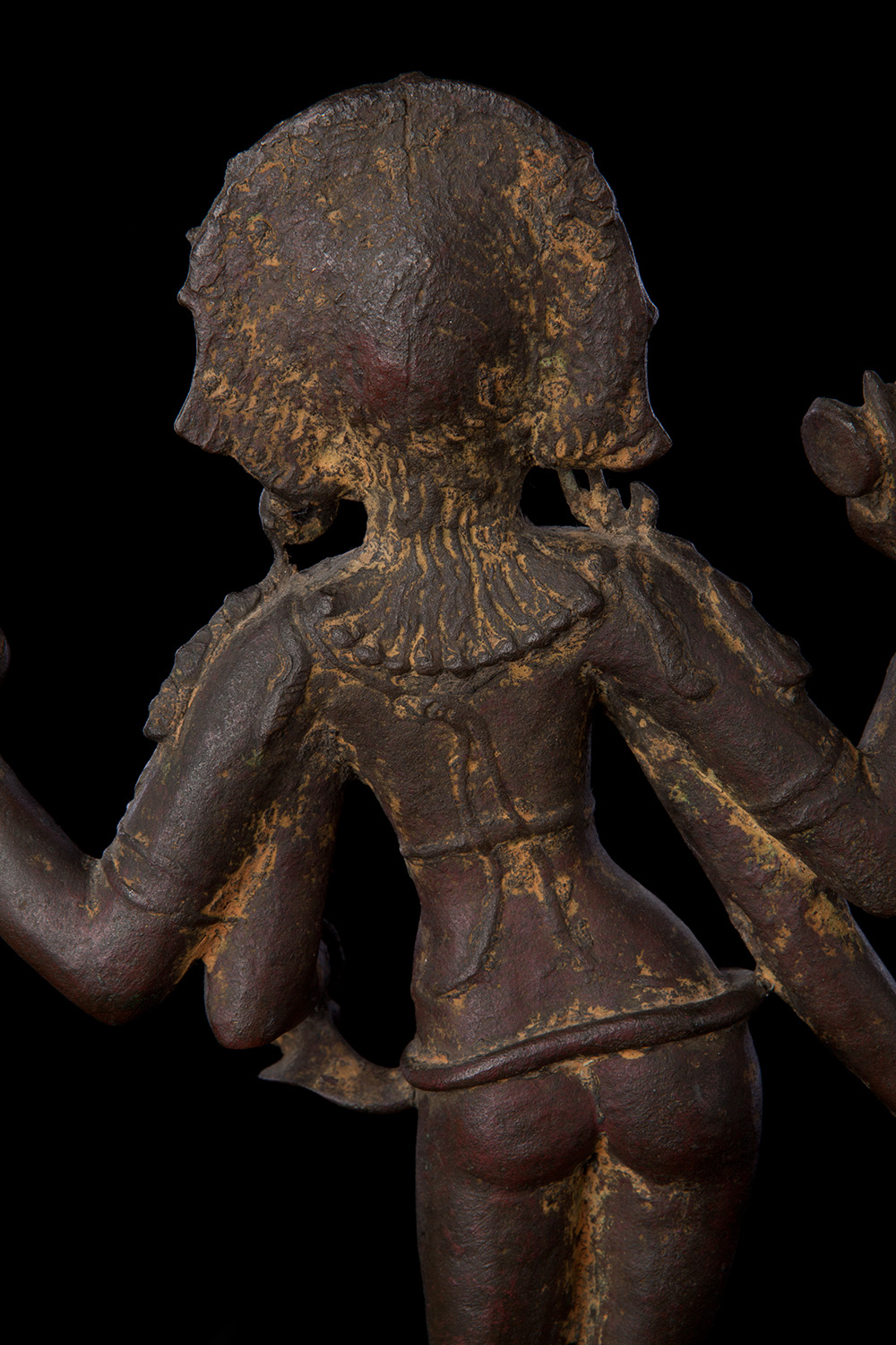 Superb 10th or possibly 11th century solid cast early Chola bronze deity from India. Condition is very good. One hand worn flat, (this is not actually damage, but because this hand sticks out and the piece is 1000 year old it has been worn flat over time). Solid cast and very heavy. It has some wear, but this is normal for an authentic piece of this large size that is so old- in India people touch their statues a lot-especially on the face. Otherwise near perfect, with an untouched chocolate brown patina. Height is near 18" (45 cm). The best Indian piece I have ever offered on my website in the 17 years I have been in existence. Ecstatic expressive face, graceful sensuous body, perfect balance and radiant glow found on only the very greatest examples. Pala and Chola examples of this size are extremely rare- especially of this gracefulness. It has been examined by a number of experts in Indian bronzes, including one who spent several months in the Chola region studying early bronzes. He said this type with this kind of base is not as common as the square type with holes in it for carrying in processions, but it is known (as type 3), and is everybit as valued and valuable as the more common square base types. Few of this size in this quality from this early date are available on the world market.