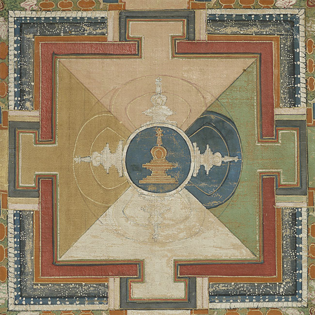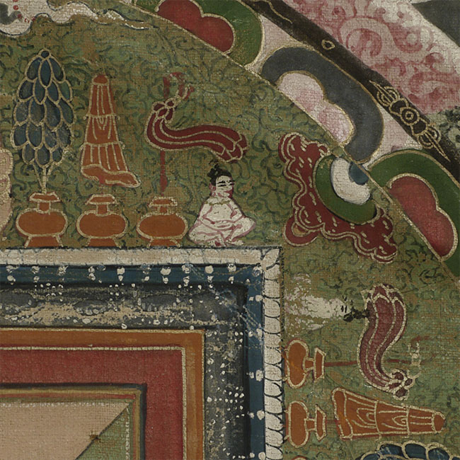 Superb Antique Tibetan Mandala Thangka Very hard to find in this quality and condition. 20.25" x 13.75". Has been cleaned, so it does not have the smell of Tibet. Wear to the surface, but shows beautifully.