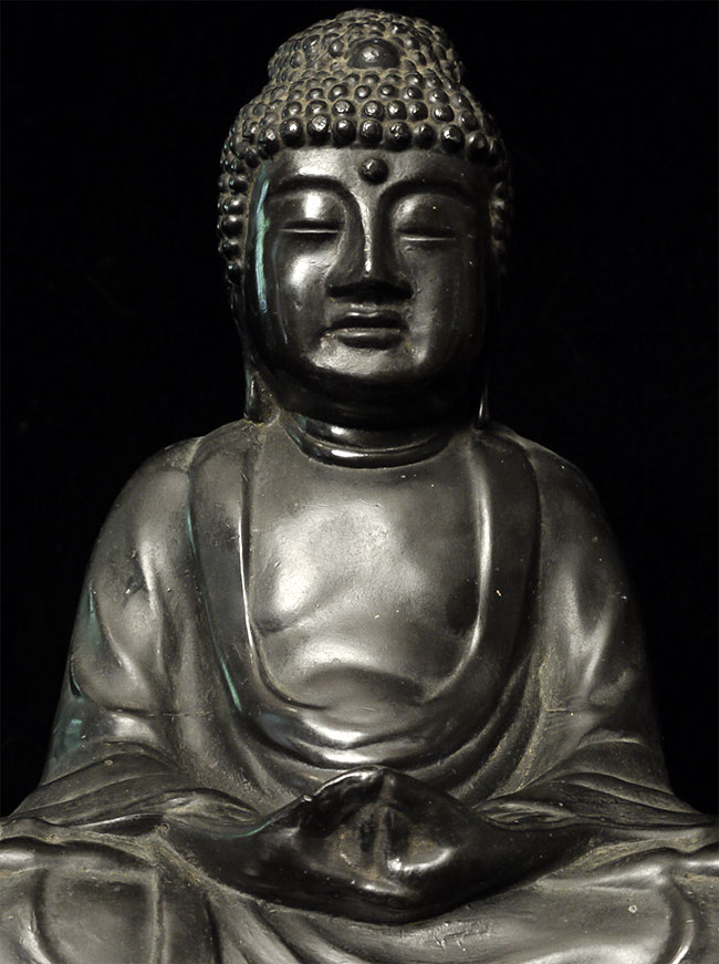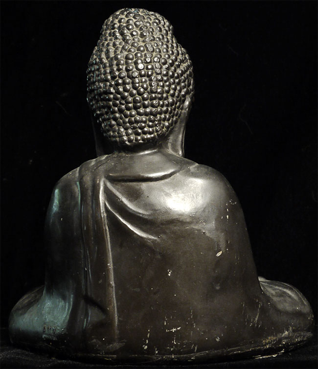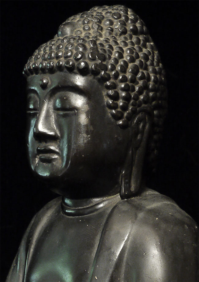 Decorative Japanese style Buddha- close to 100 years old. May have been cast in the USA. Buddha sits 6" tall.