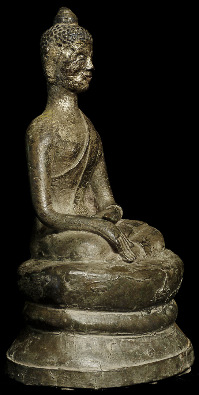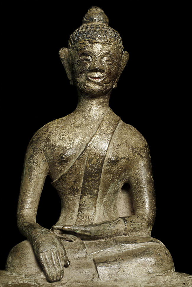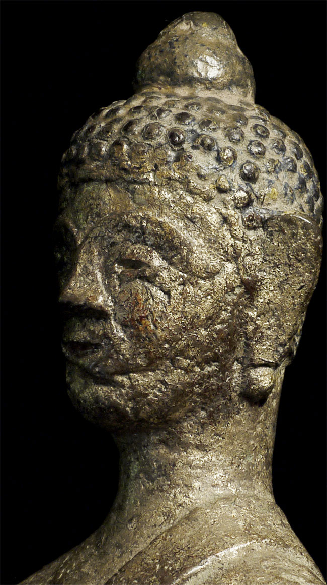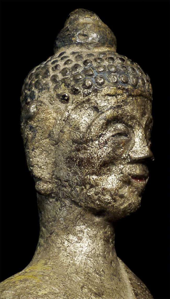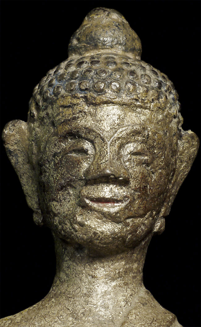 Delightful and unusual Laos Buddha in a folk style. He has an extremely sweet face and an unusual profile. I've not had another like this one before. Stands 9 inches tall.