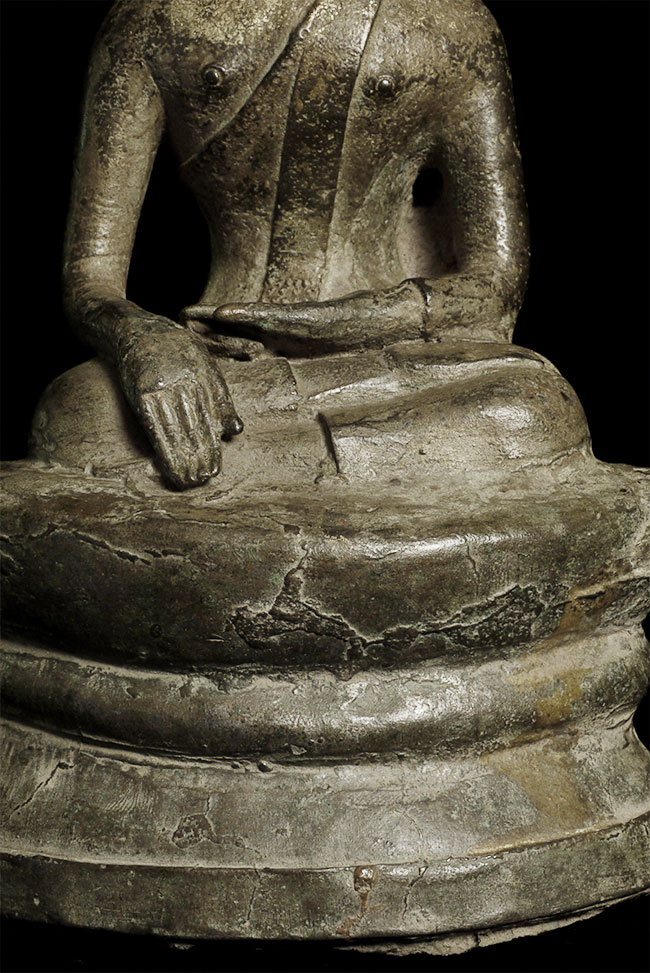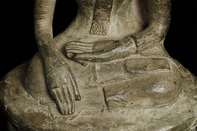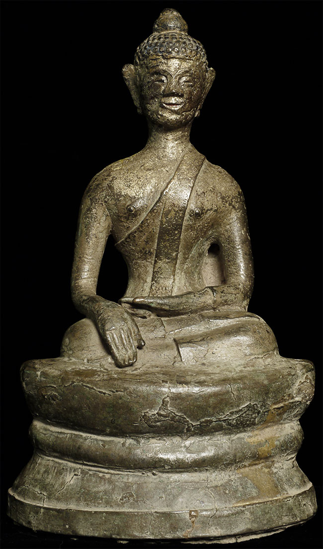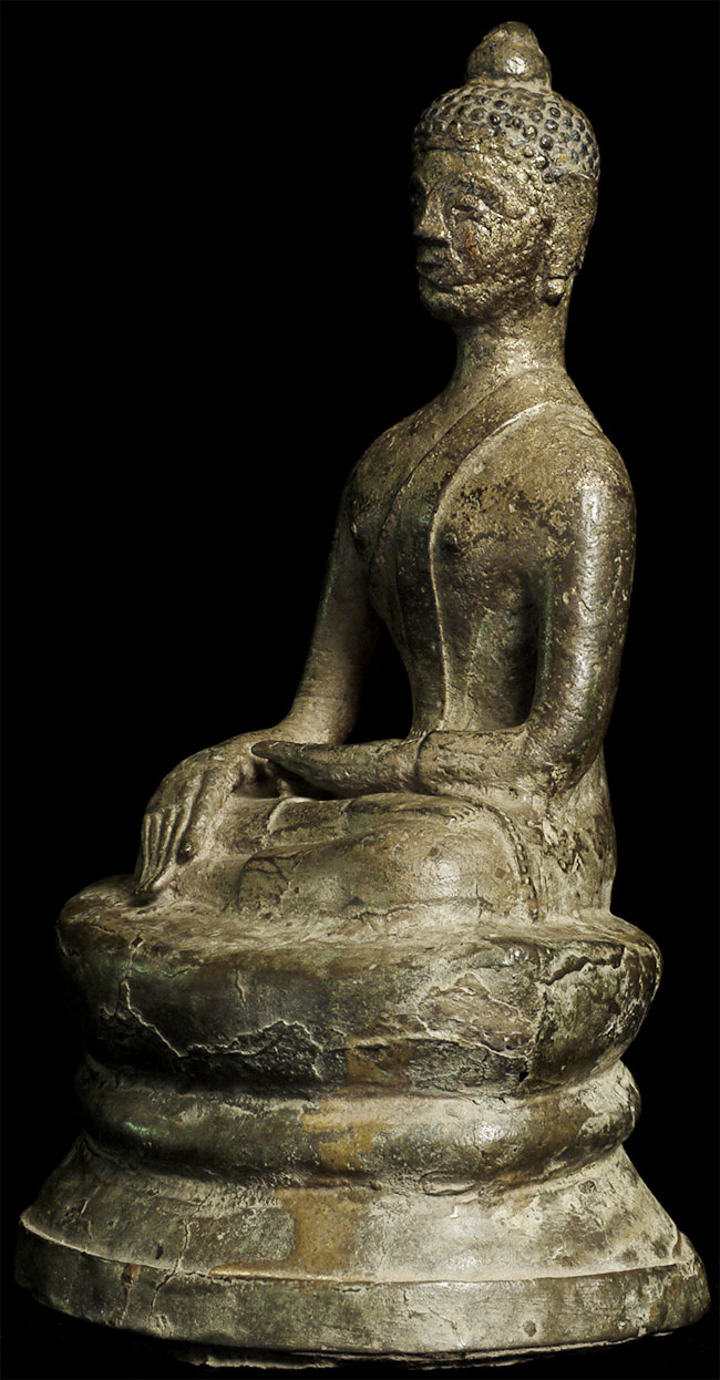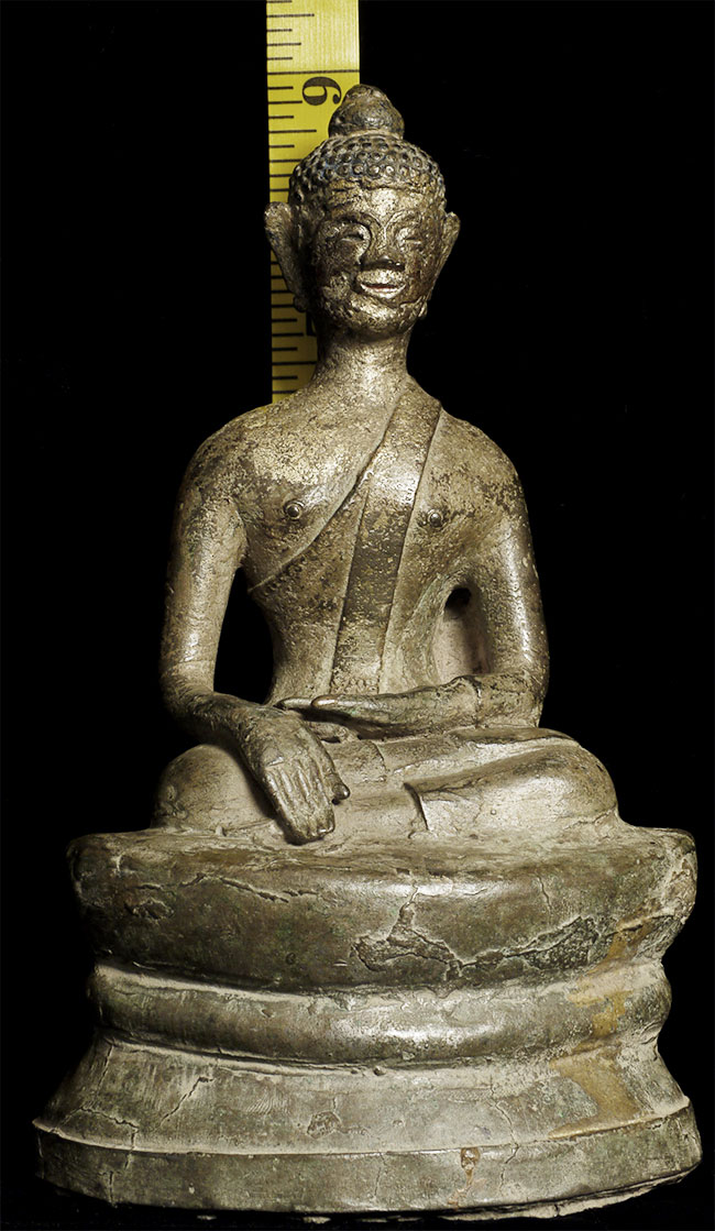 Delightful and unusual Laos Buddha in a folk style. He has an extremely sweet face and an unusual profile. I've not had another like this one before. Stands 9 inches tall.