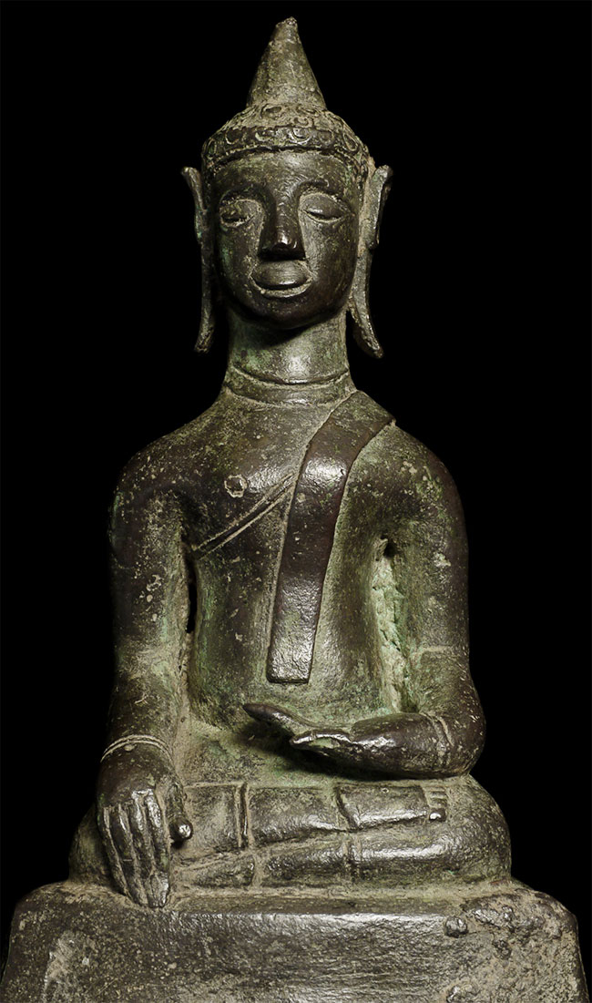 Wonderful Lao Buddha with a joyous expression. Sits 7 and 1/2 inches high.