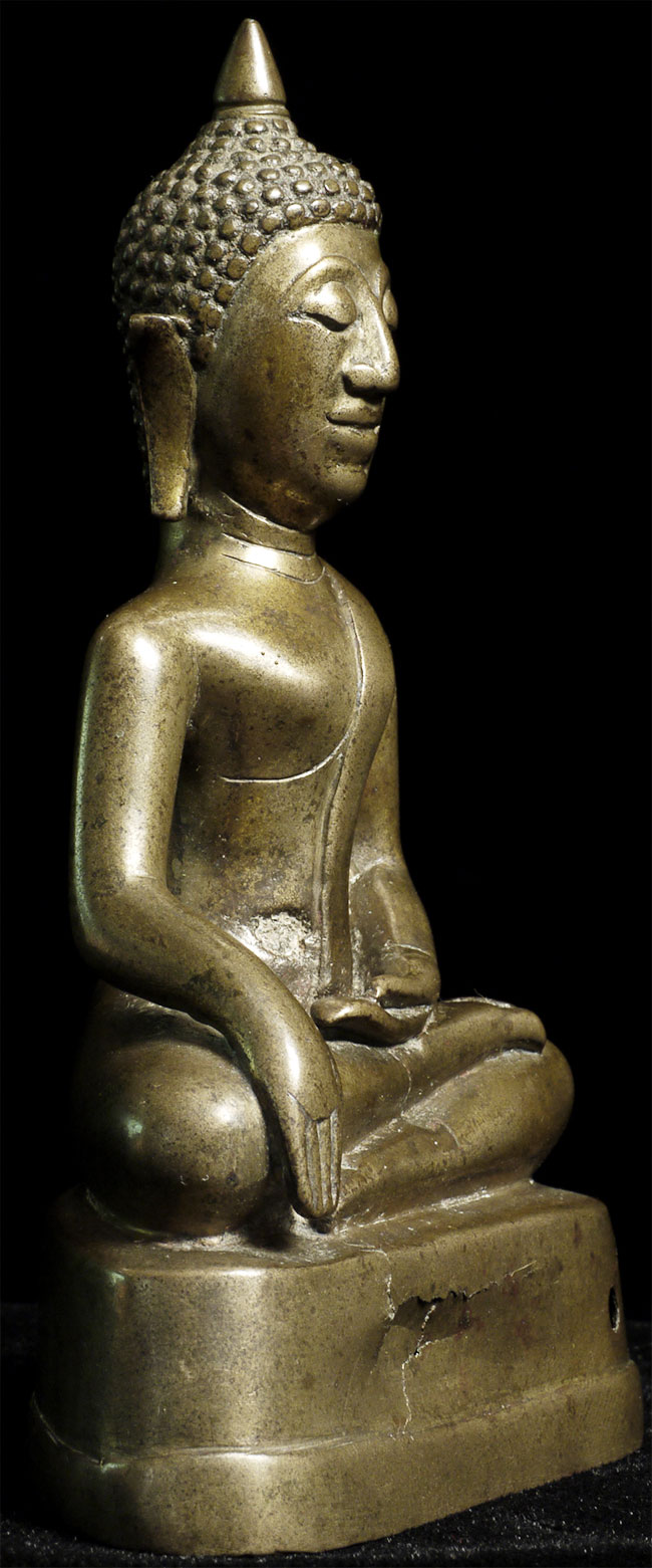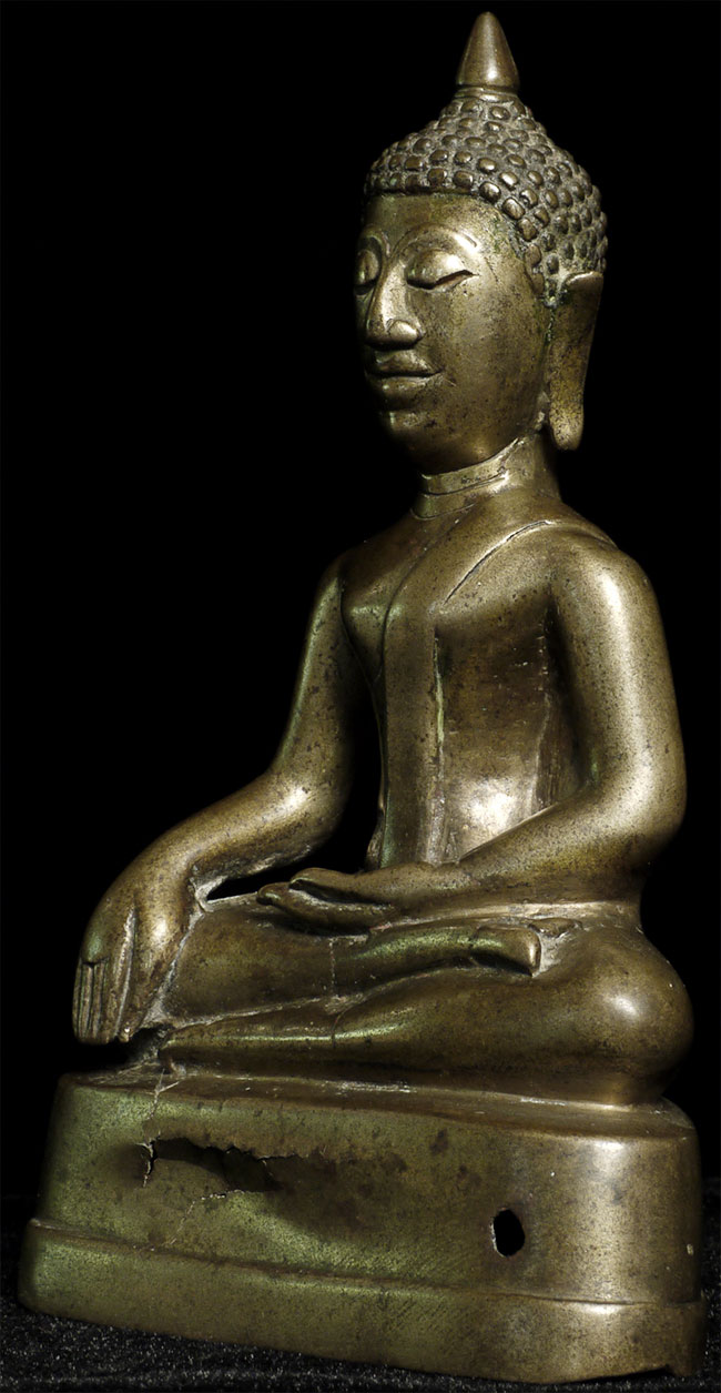 Superb 16thC Northern Thai Bronze Buddha. Classic face- animated, joy-filled, and serene. A personal favorite. 4 1/8" tall