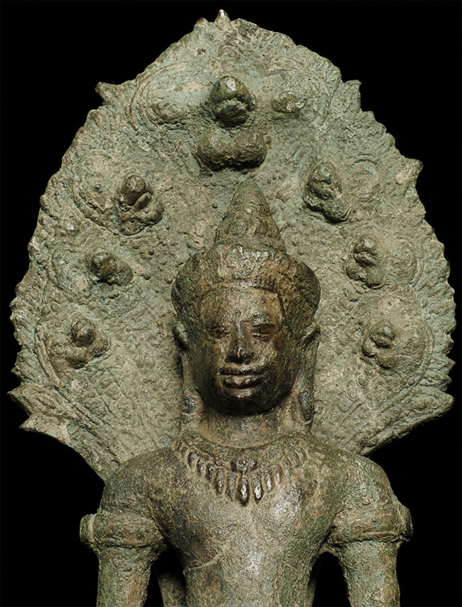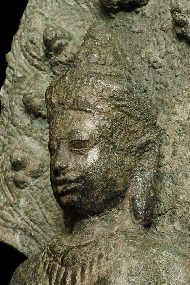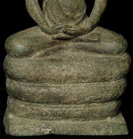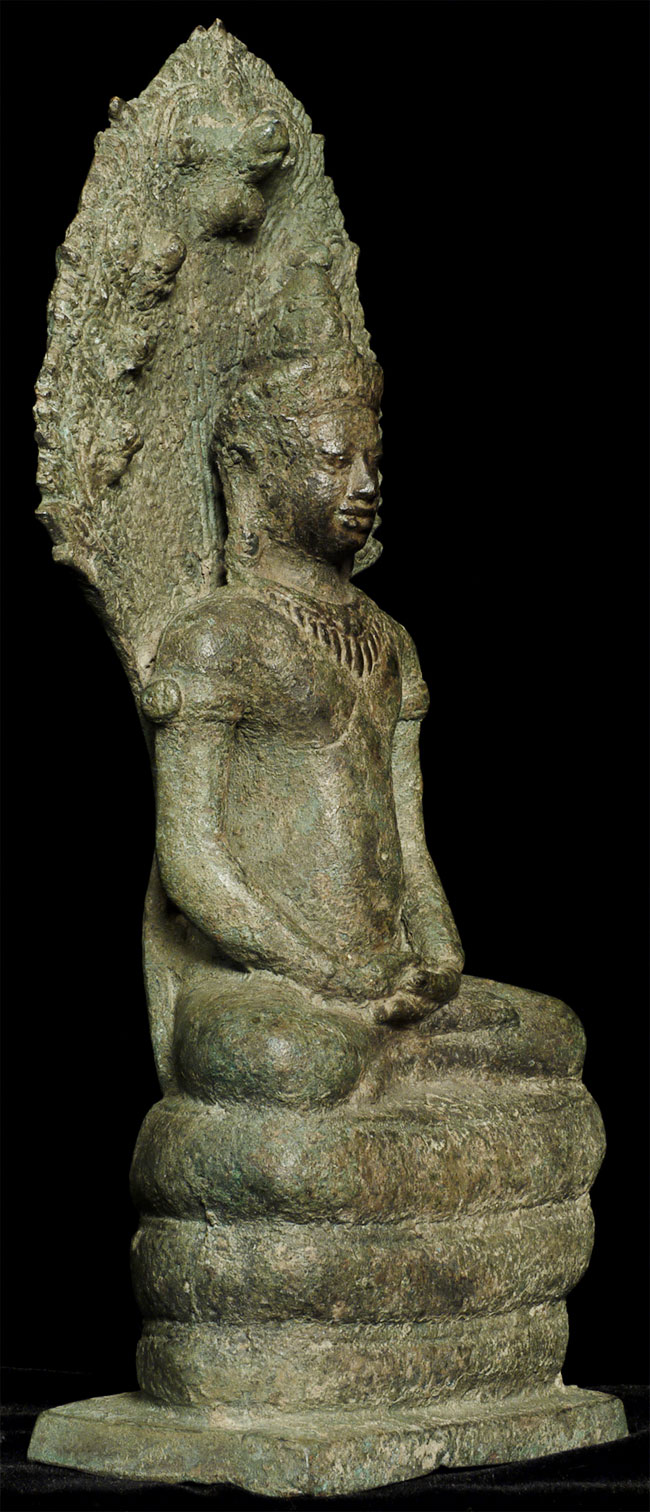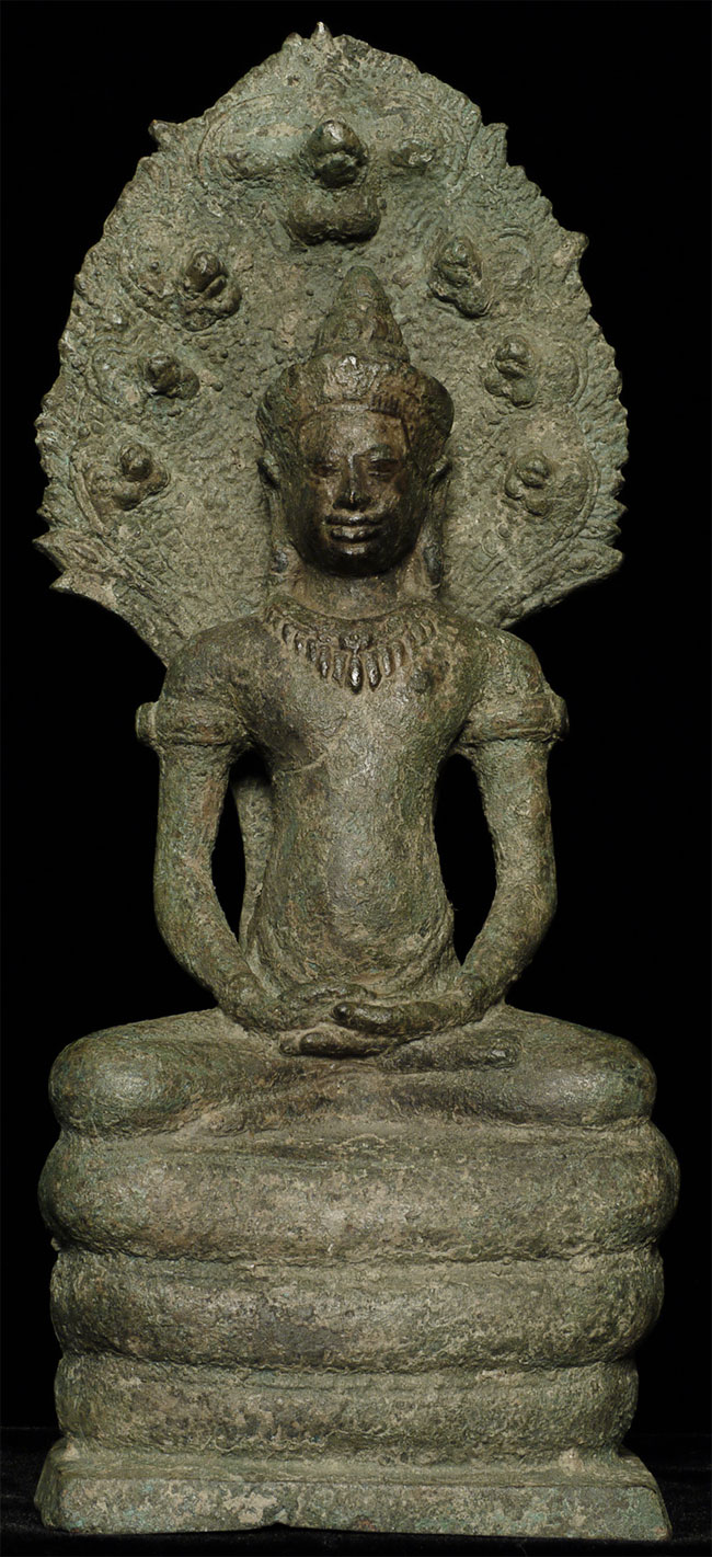 Beautiful 9" tall Khmer style Naga Buddha. In a 12thC style, but probably 20th century. Still, an exceptional Buddha.