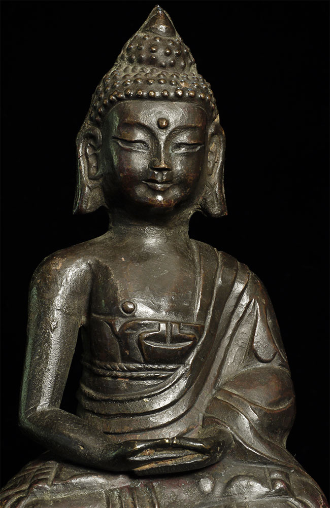 BUDDHA 19th Century Mongolia Copper, 7-1/2 Inches Tall