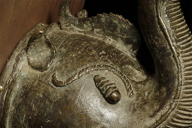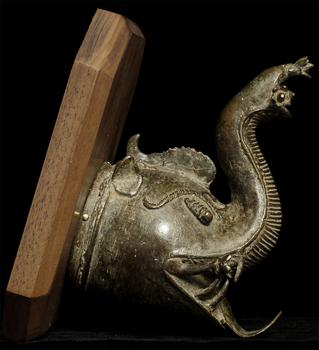 18C India cast brass elephant head on wooden wall mount. 3.8" diameter, 4.5" tall. Sold to previous owner in 1993 by Conway of Asia, Carmel, CA