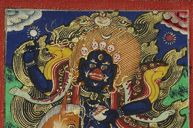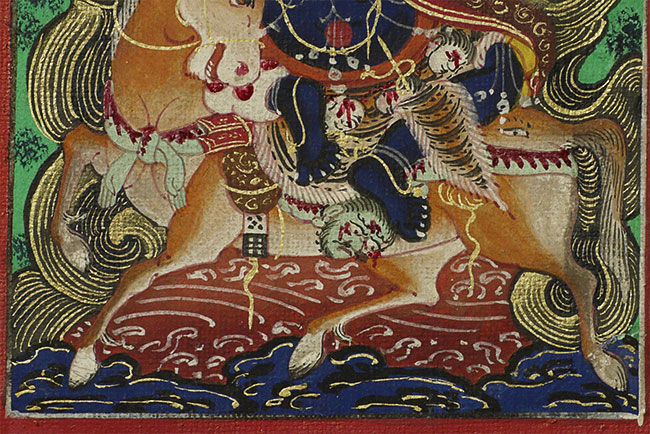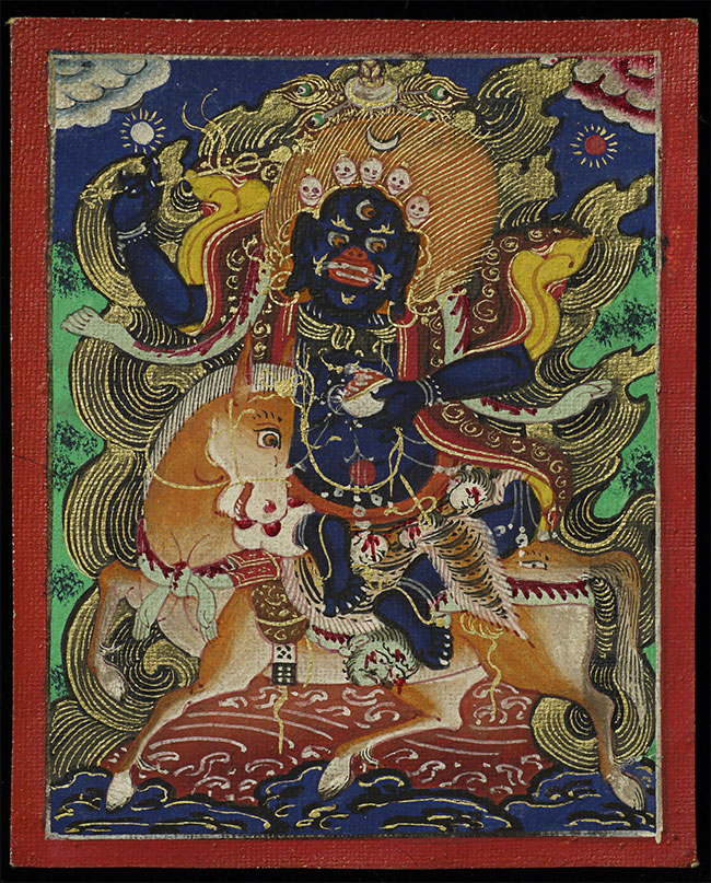 Beautiful and vibrant old miniature painted Thangka is 3 1/8" x 2.5"