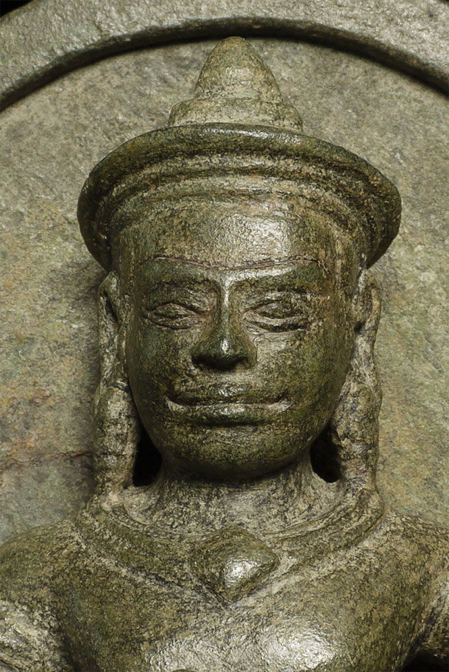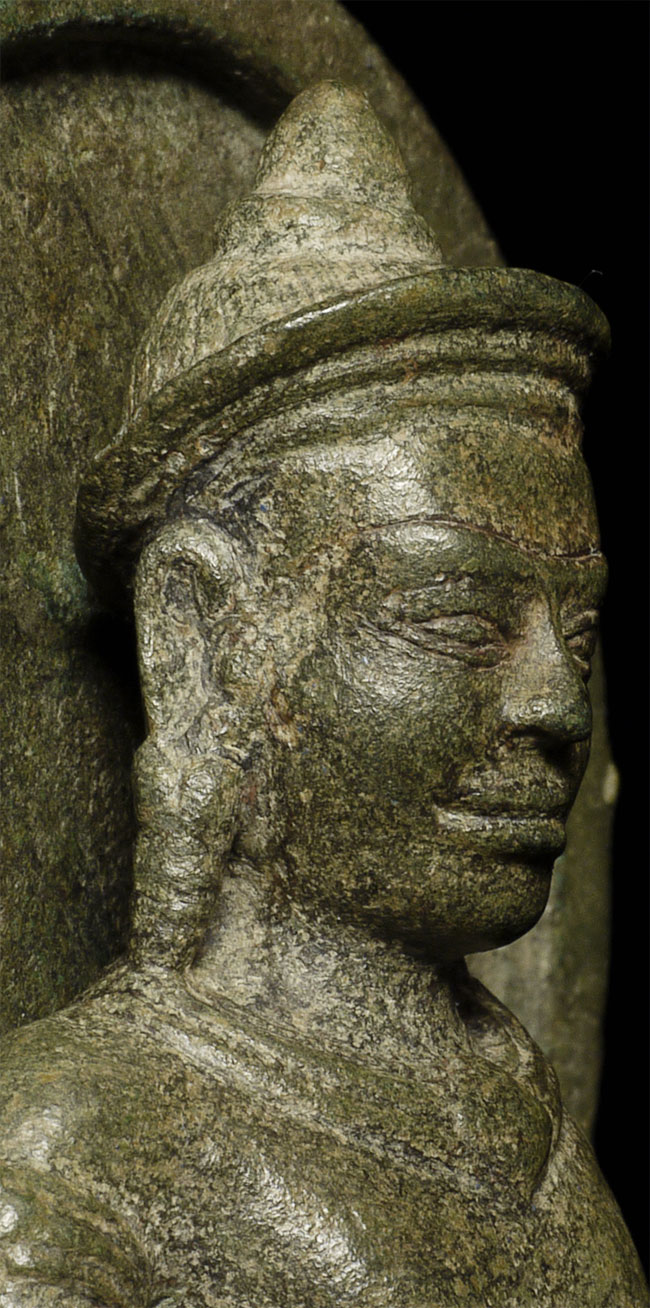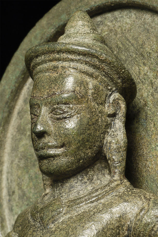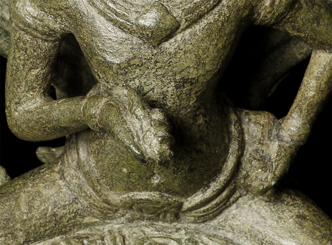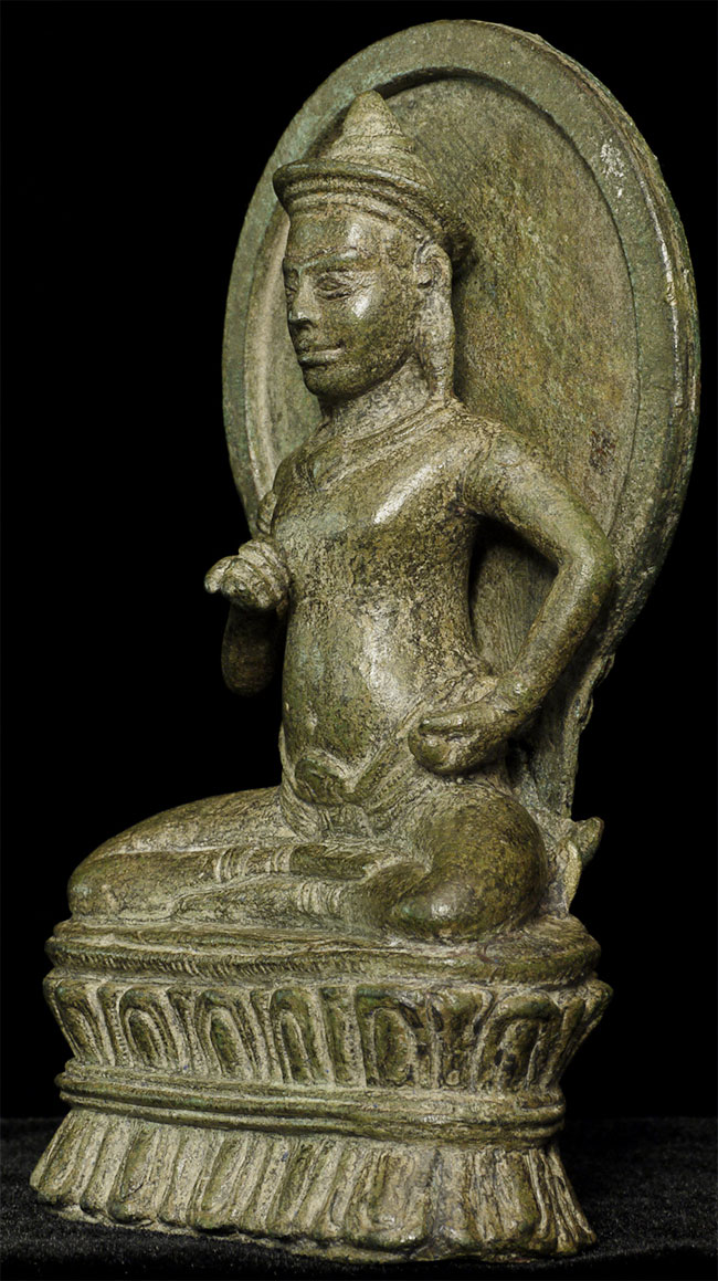 Exceptional Cambodian Buddhist figure. Superb "jade skin" patina. This piece measures 4.75" tall.