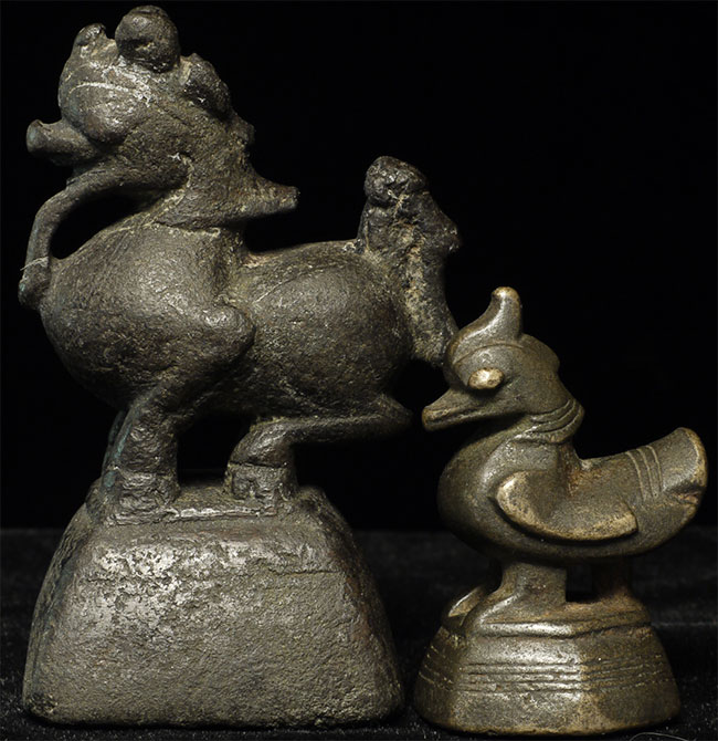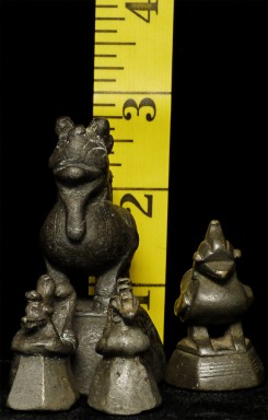Set of 4 antique Burmese opium weights ranging in height from 1 3/8" to 2.75" tall.