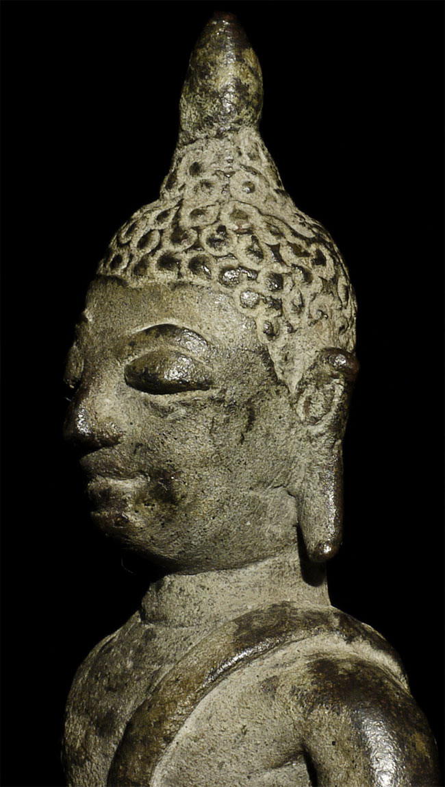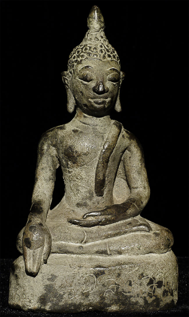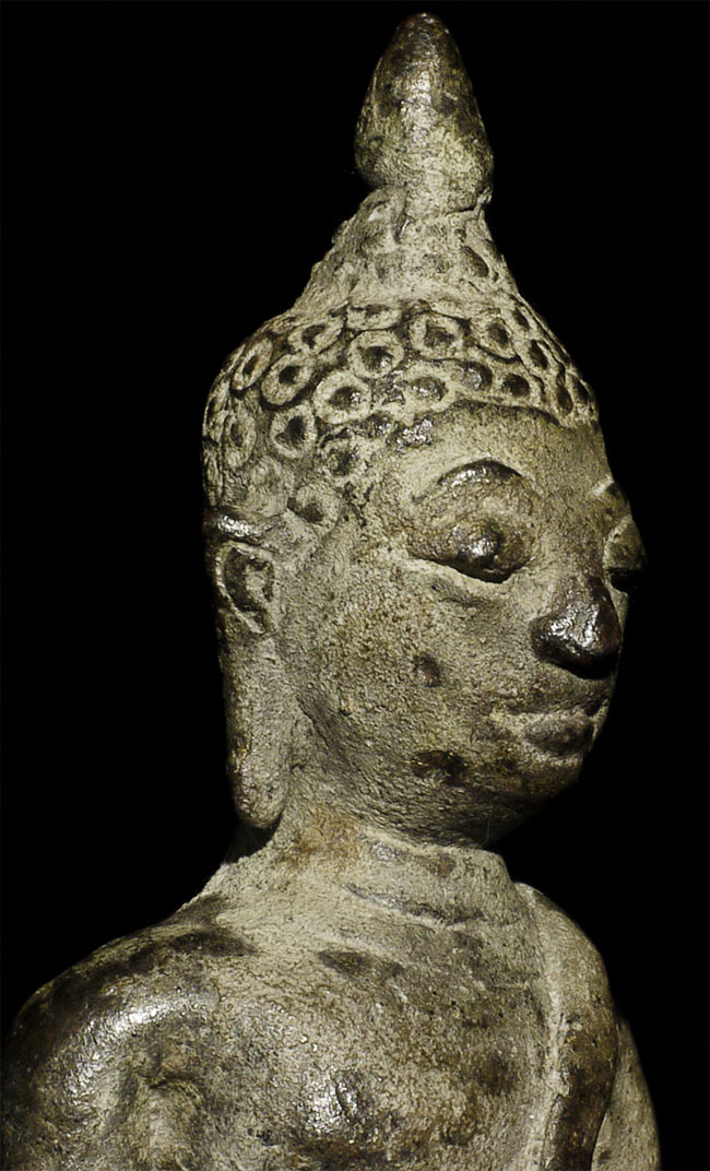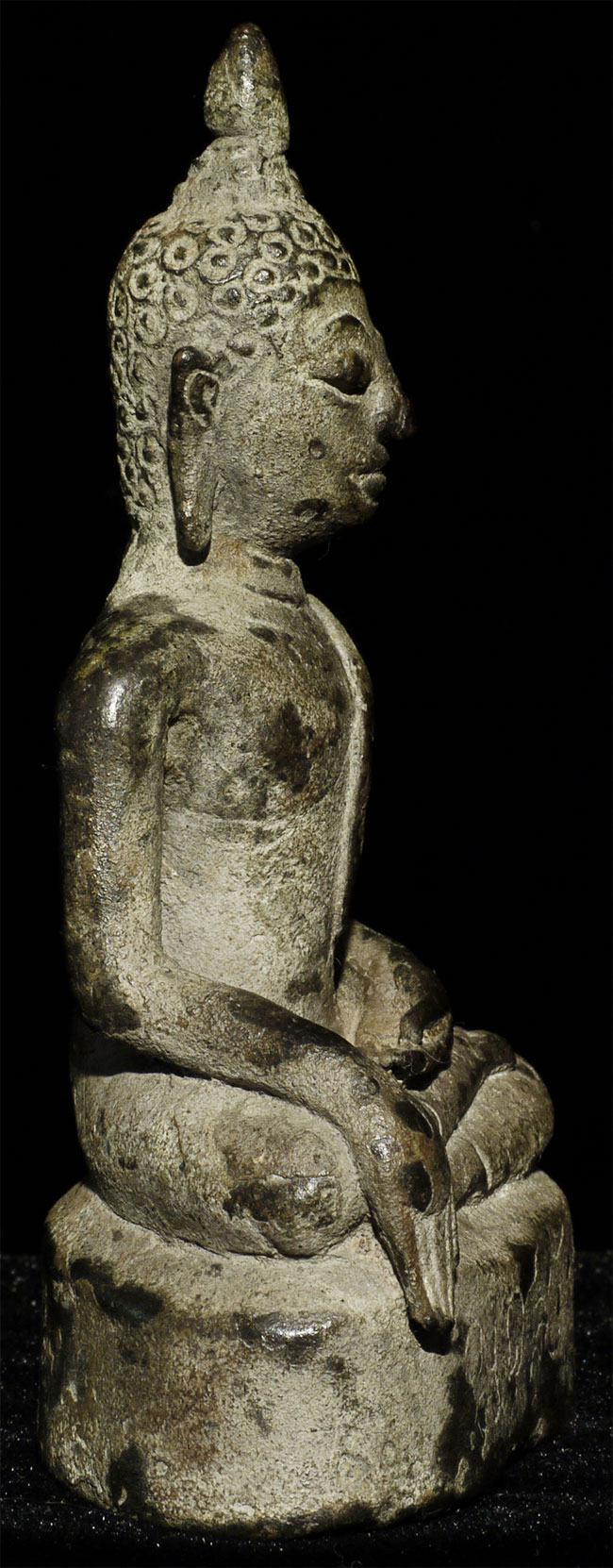 15th-17thC Thai Bronze Buddha. Wear and dings as seen in the photos. Wonderful feel to this one. Measures 4.75" tall.