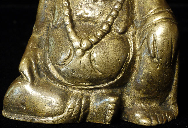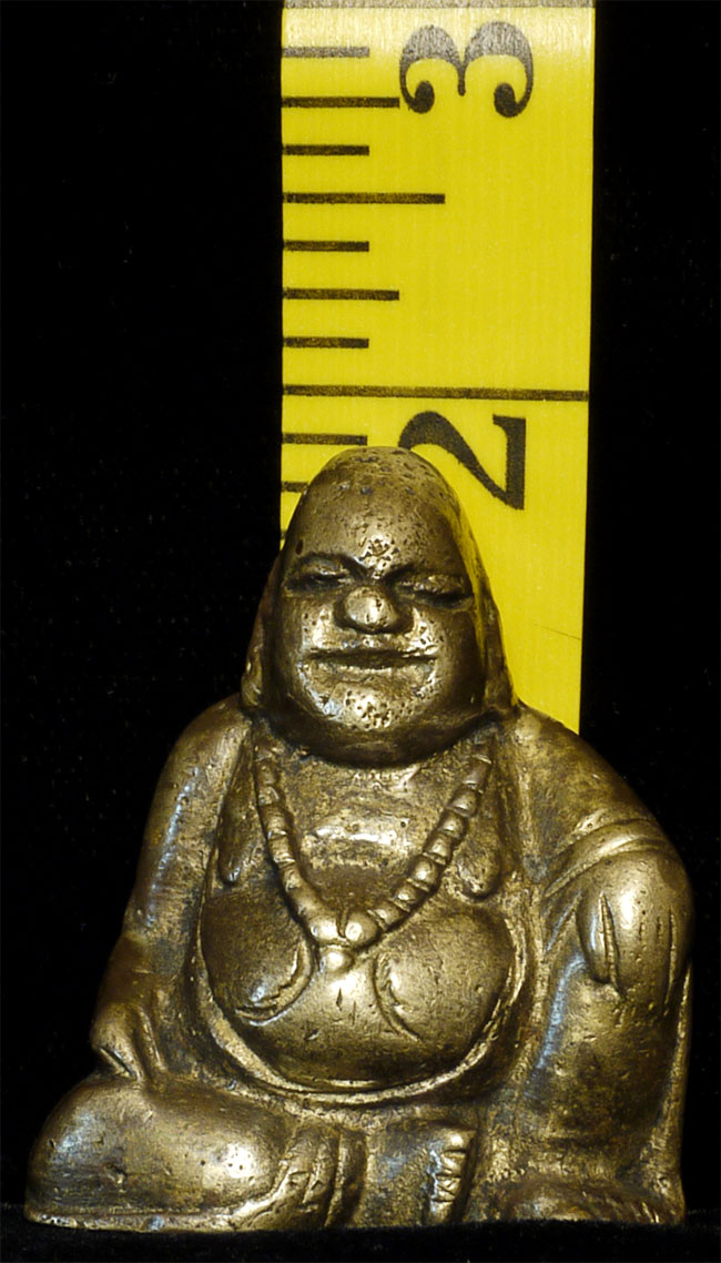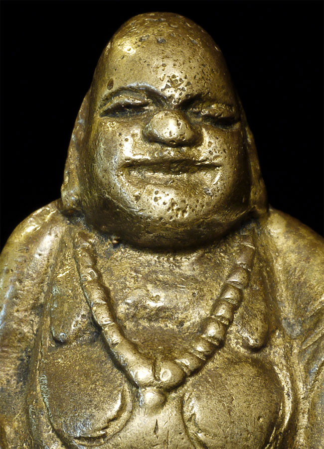 Antique bronze Hotai with a great smile. 1 7/8" tall. Heavy for its size.