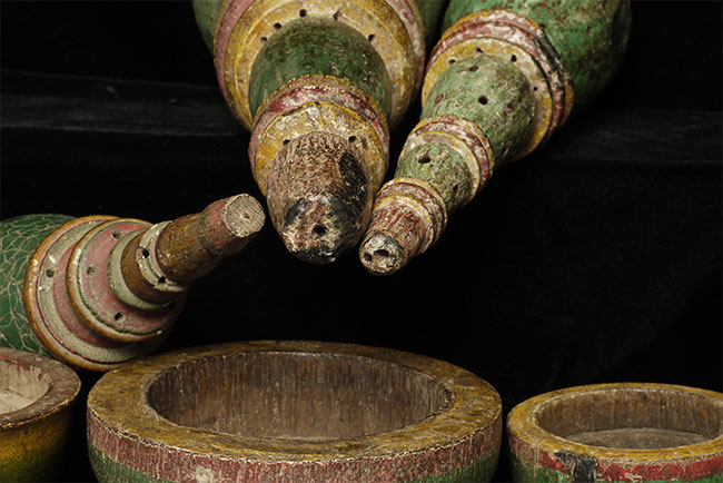 Set of three old/antique incense burner/candleholder spires. Probably from a temple. Tallest is 16.25" tall.