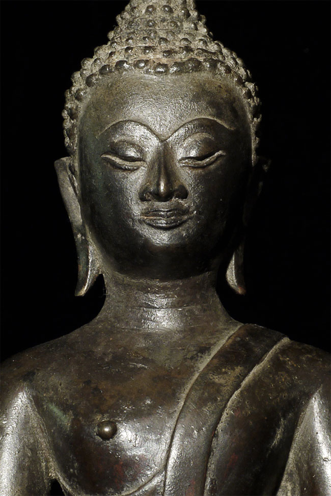 Extremely fine early Ayuthaya bronze Buddha- an exceptional example of its type. 8 1/8" tall.