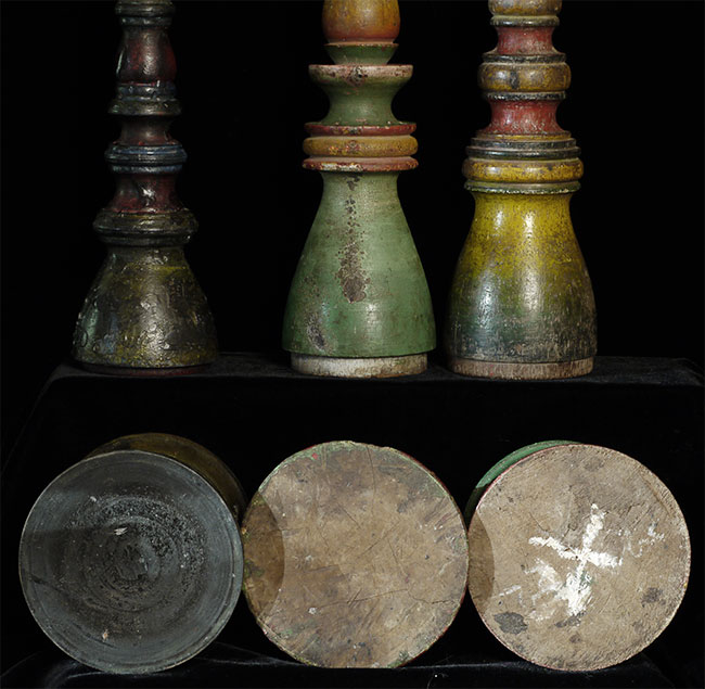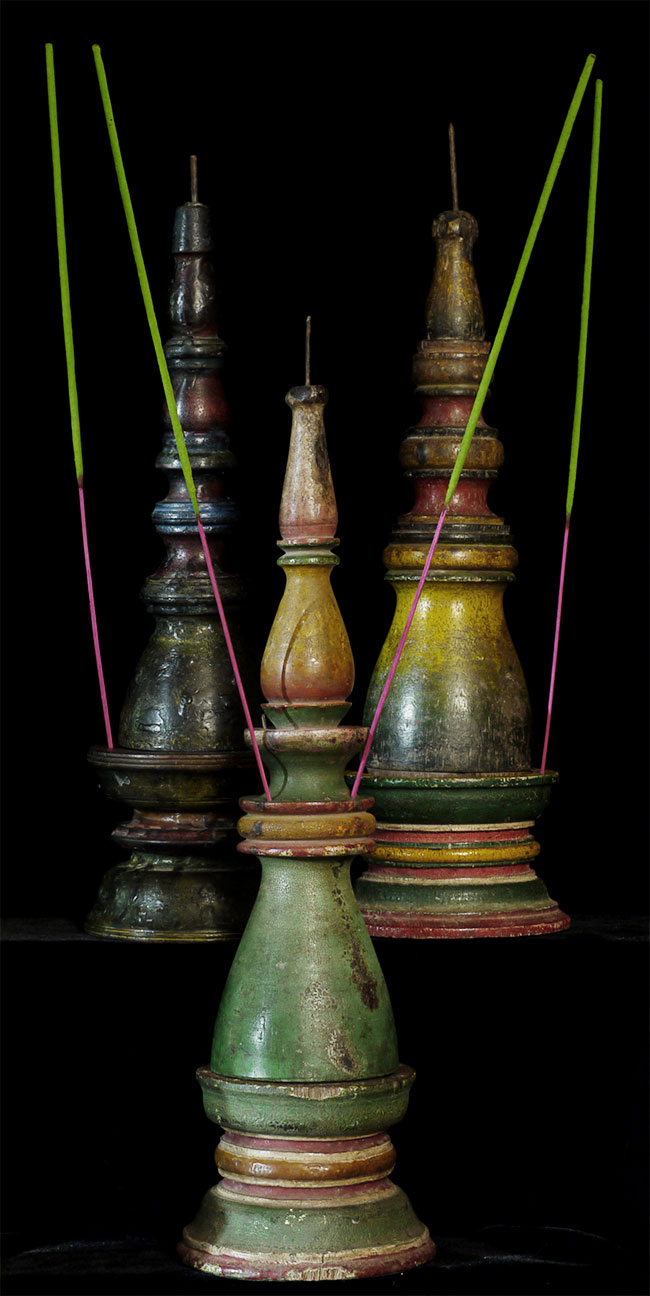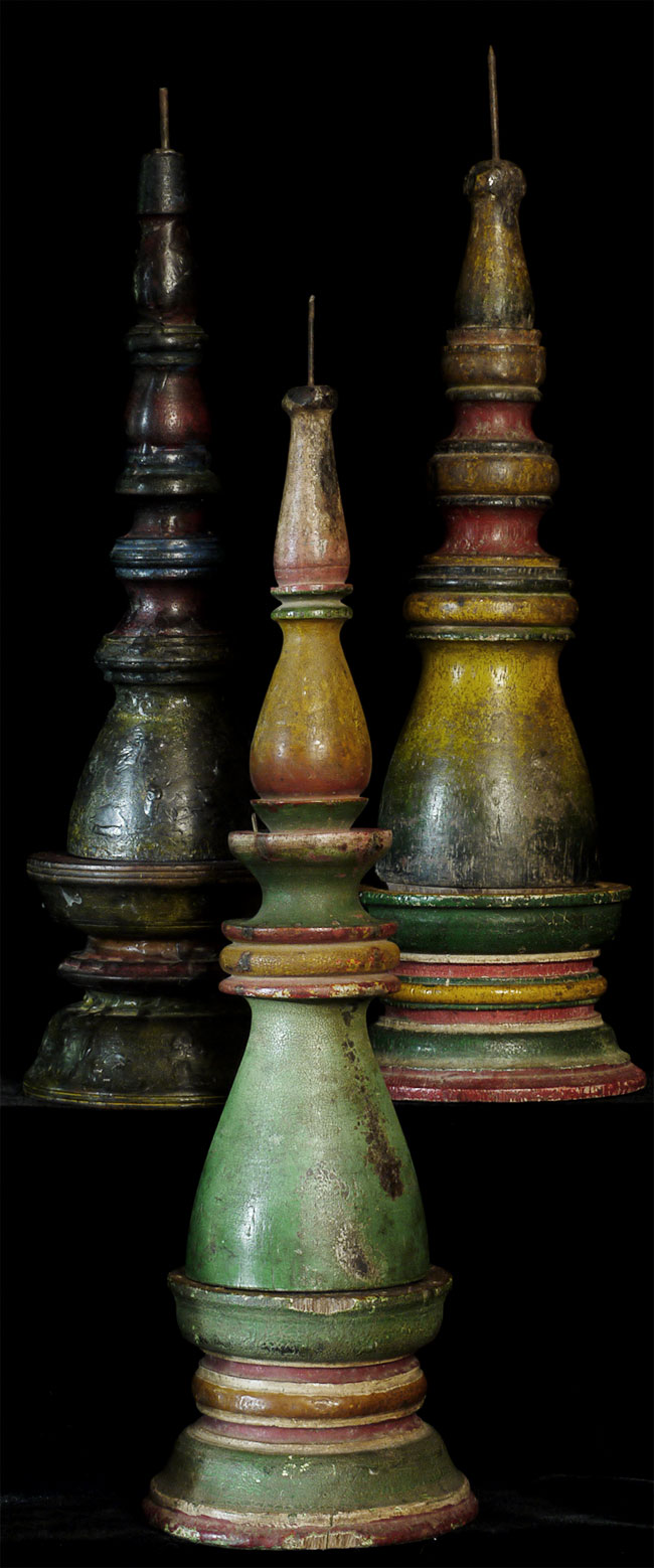 Set of three old/antique incense burner/candleholder spires. Probably from a temple. Tallest is 16.25" tall.