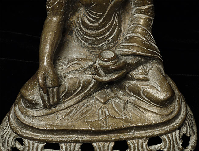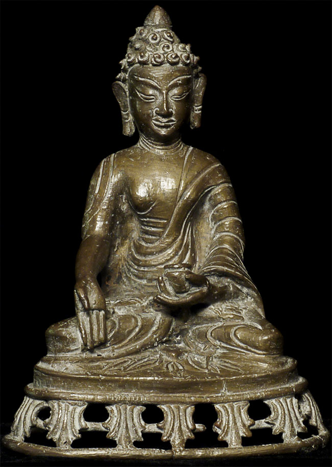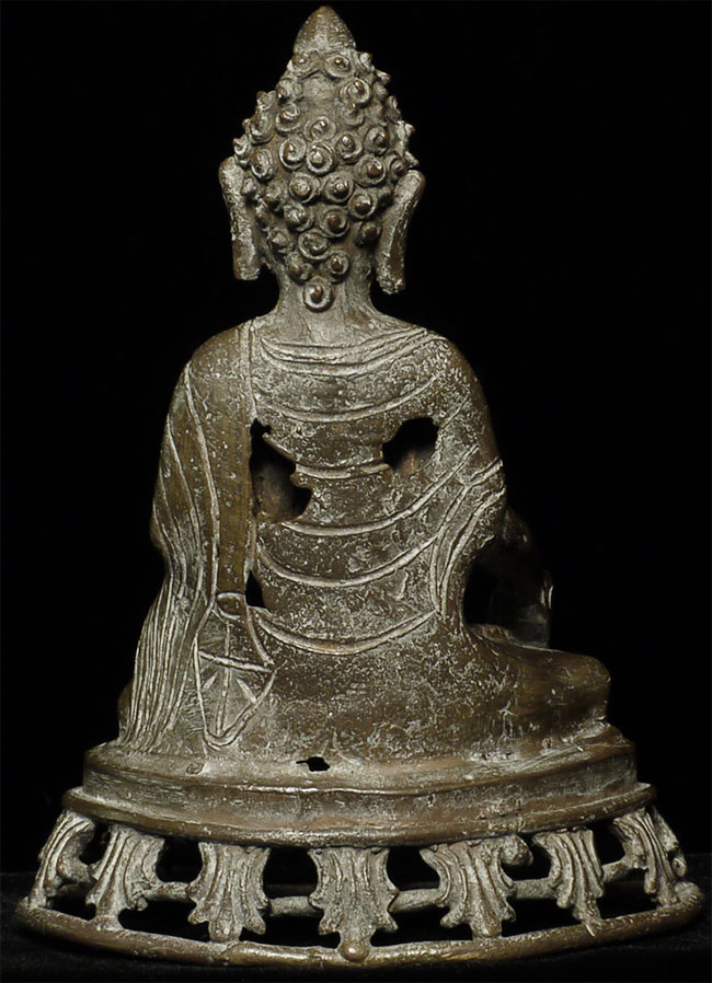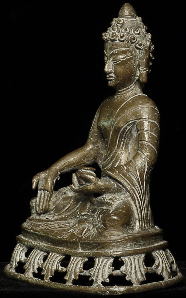 Vintage/Old Bronze Buddha- possibly Nepalese- has influence from both Himalayas and SE Asia. A mystery. Sits 6" tall