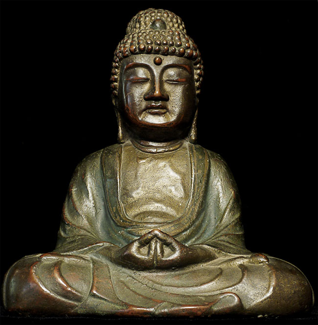 Bronze Buddha cast about 100 years ago in either the USA or Europe. 6" tall