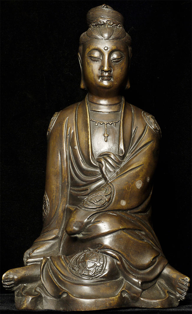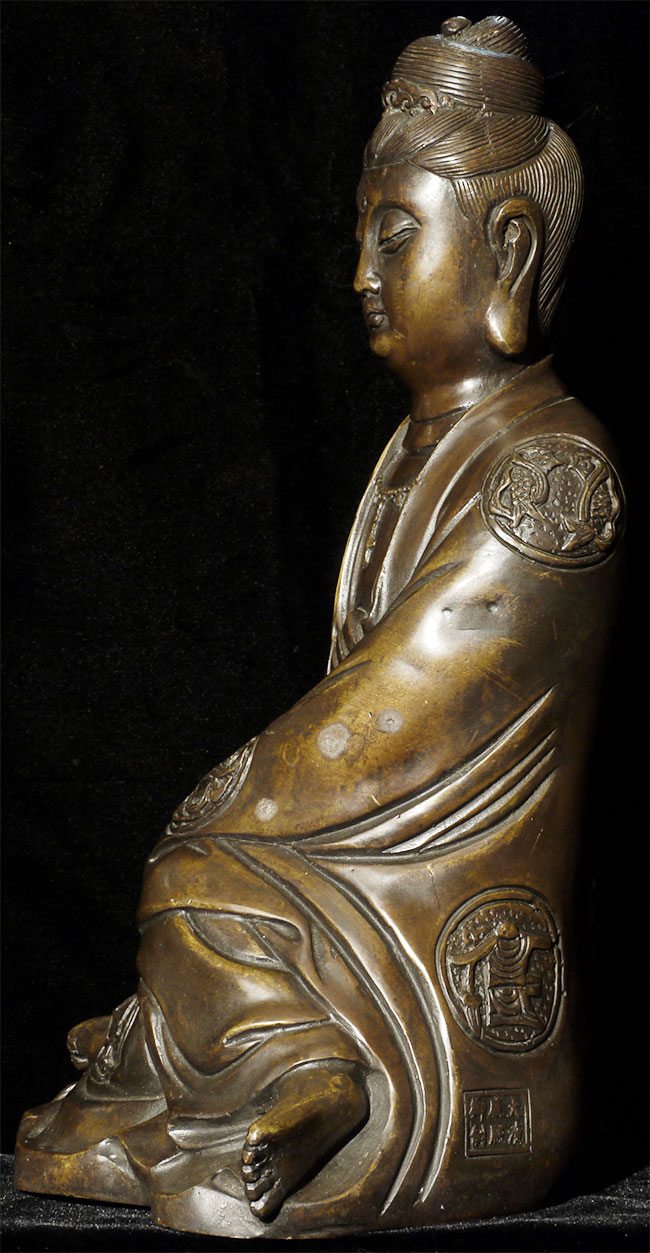 Very decorative Chinese bronze Quanyin. Large at 11" tall. Very lovely!