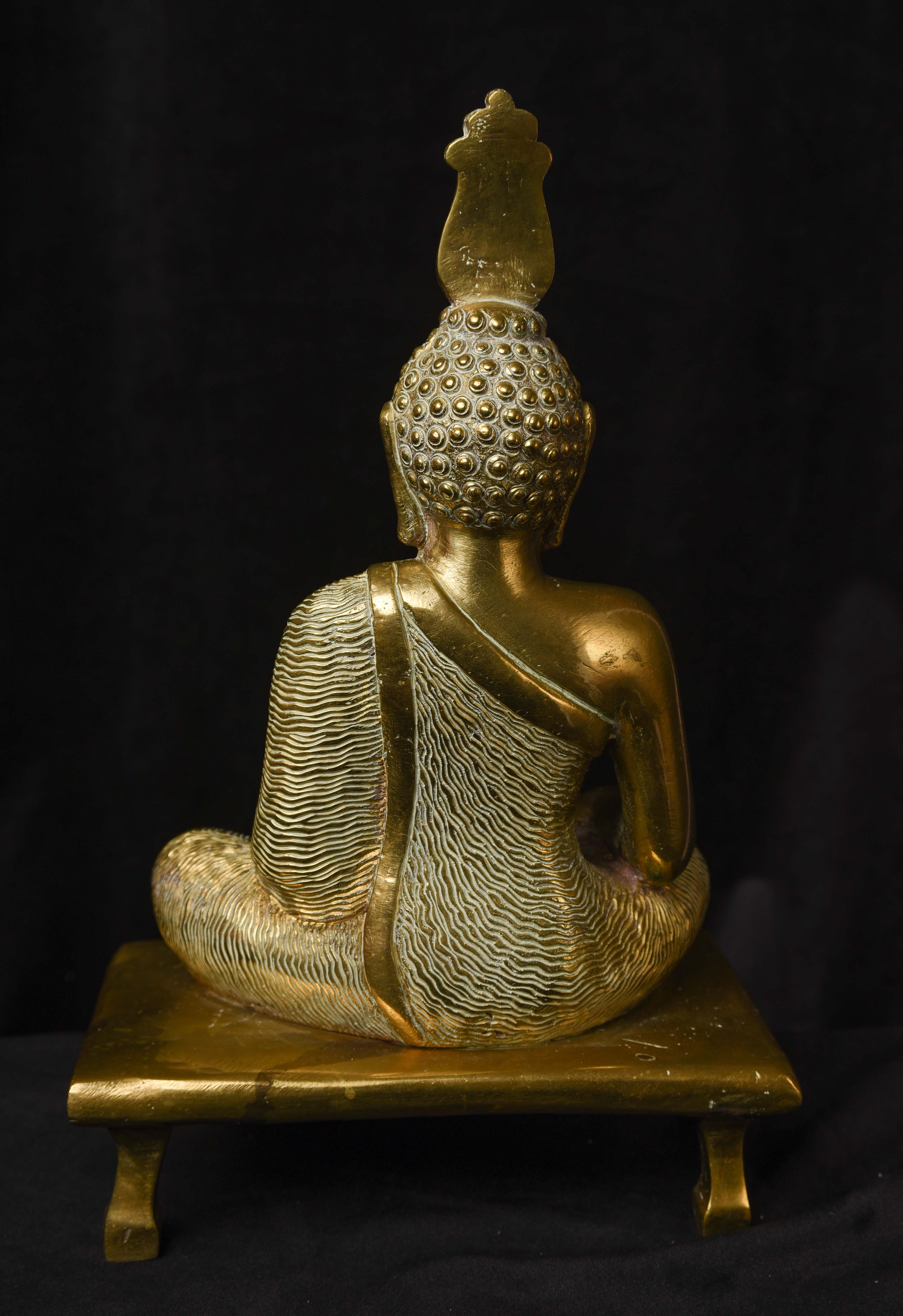 Large Sri Lankan Buddha- almost glows in the dark. Special metal alloy. does not seem to tarnish. Very well cast and finished. Large at 11" total height including attached base. Superb sculpting-face in deep concentration. Quite heavy for its size. Very Special!