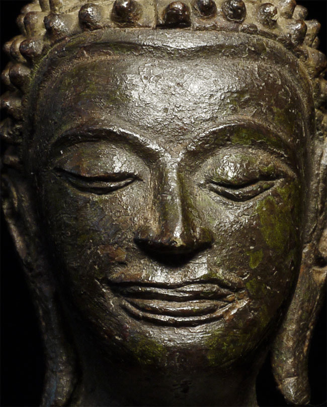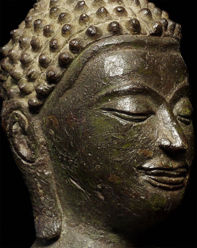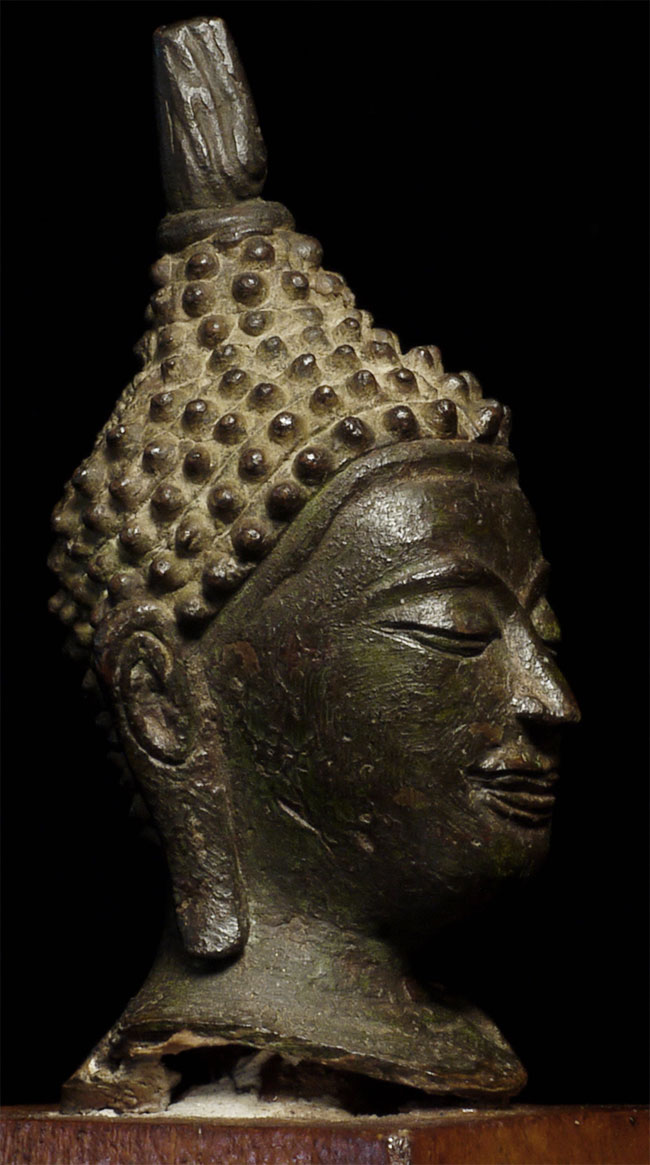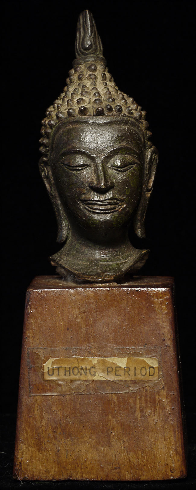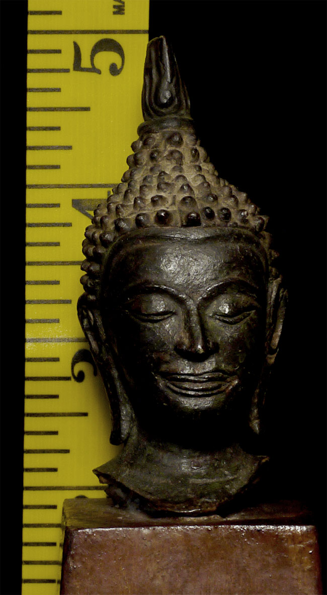 Superb small 15thC Utong style Thai Buddha. Classic "Utong "C" style, Sits 3" tall and 5" tall on its custom base.