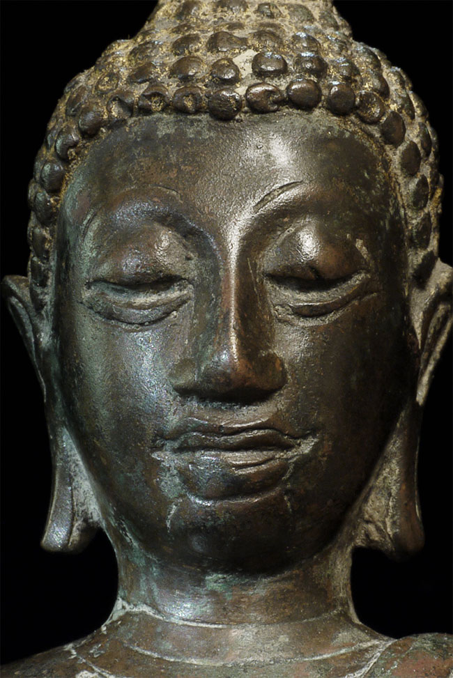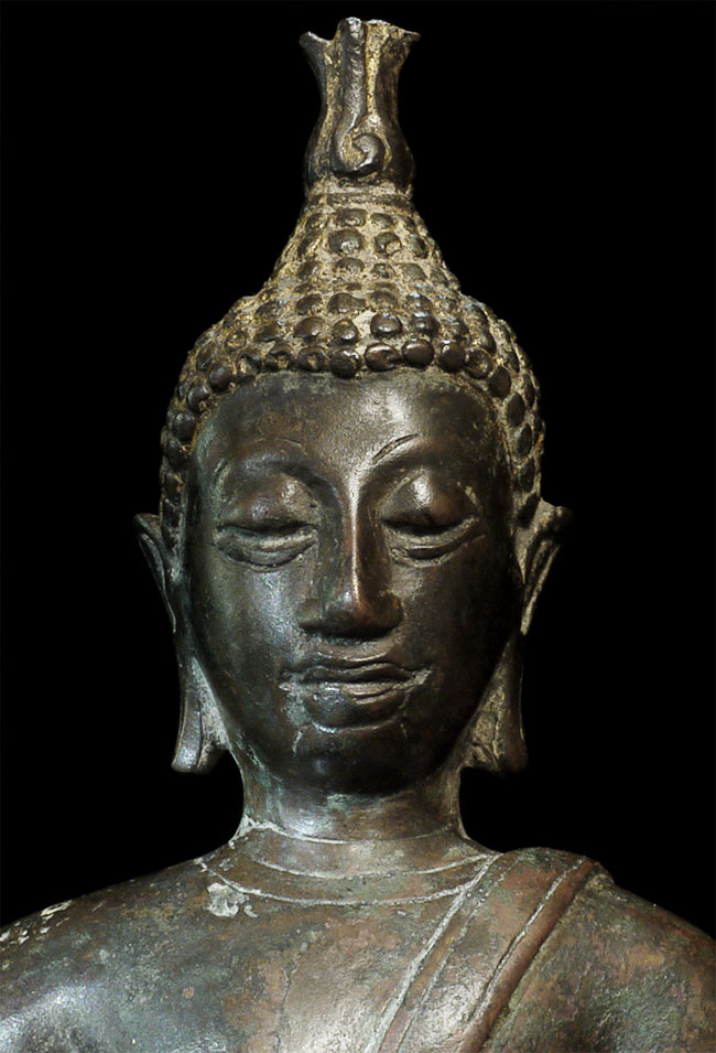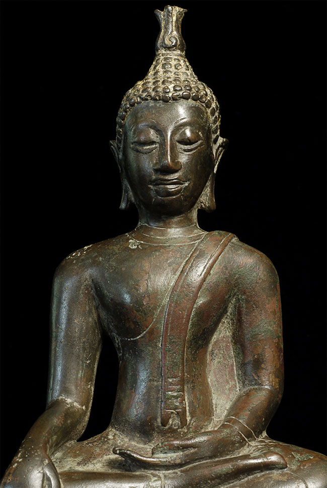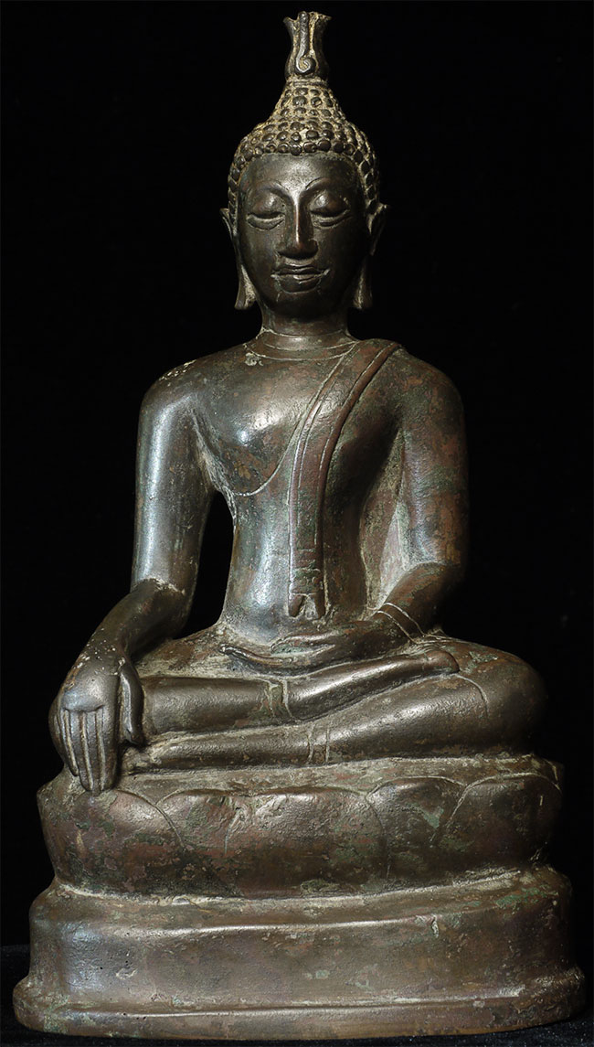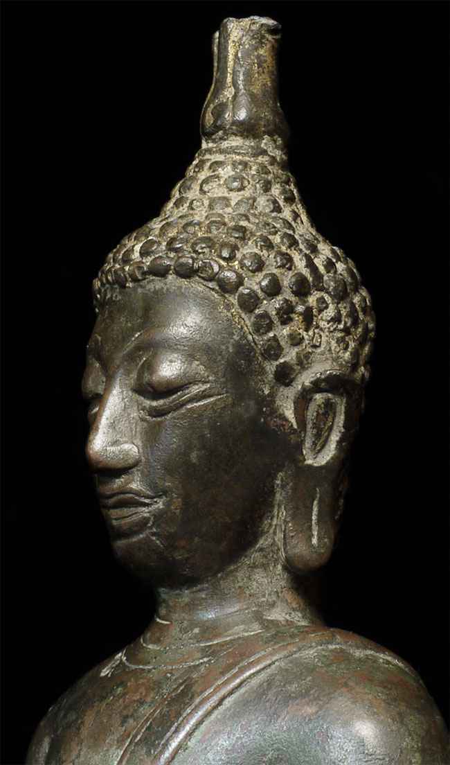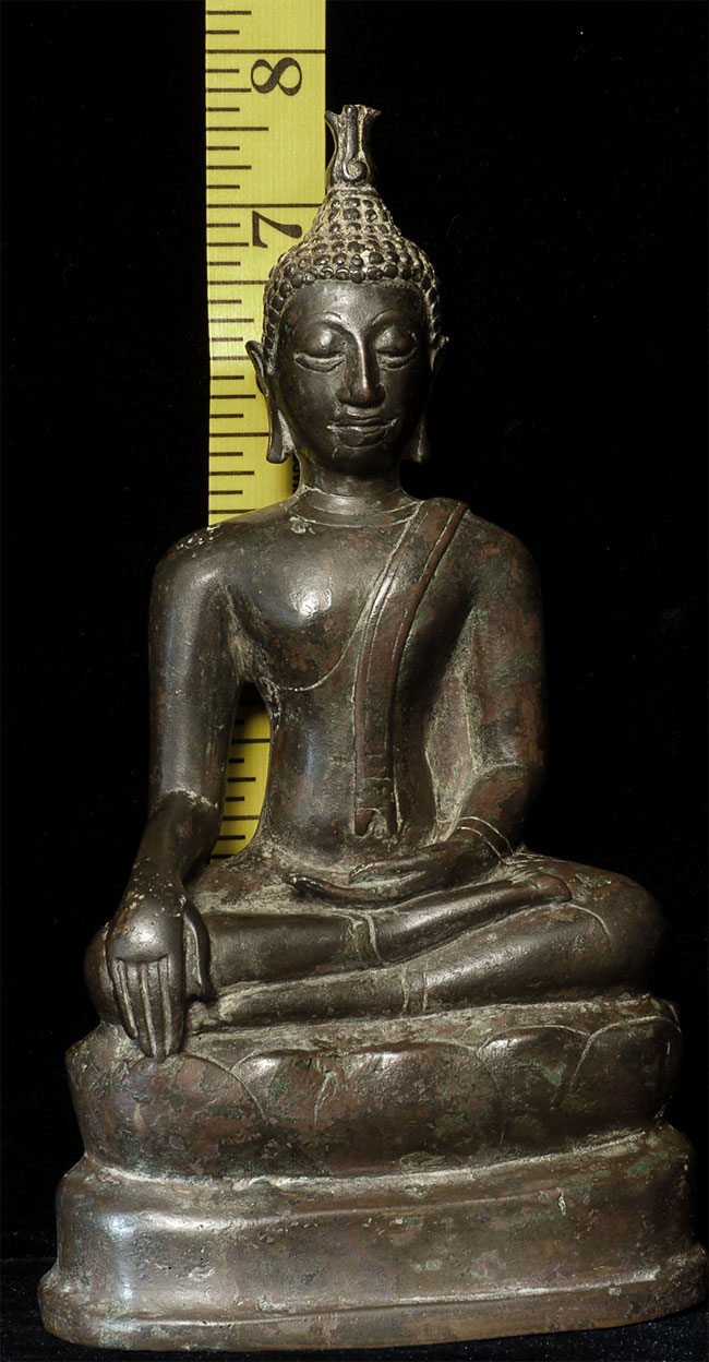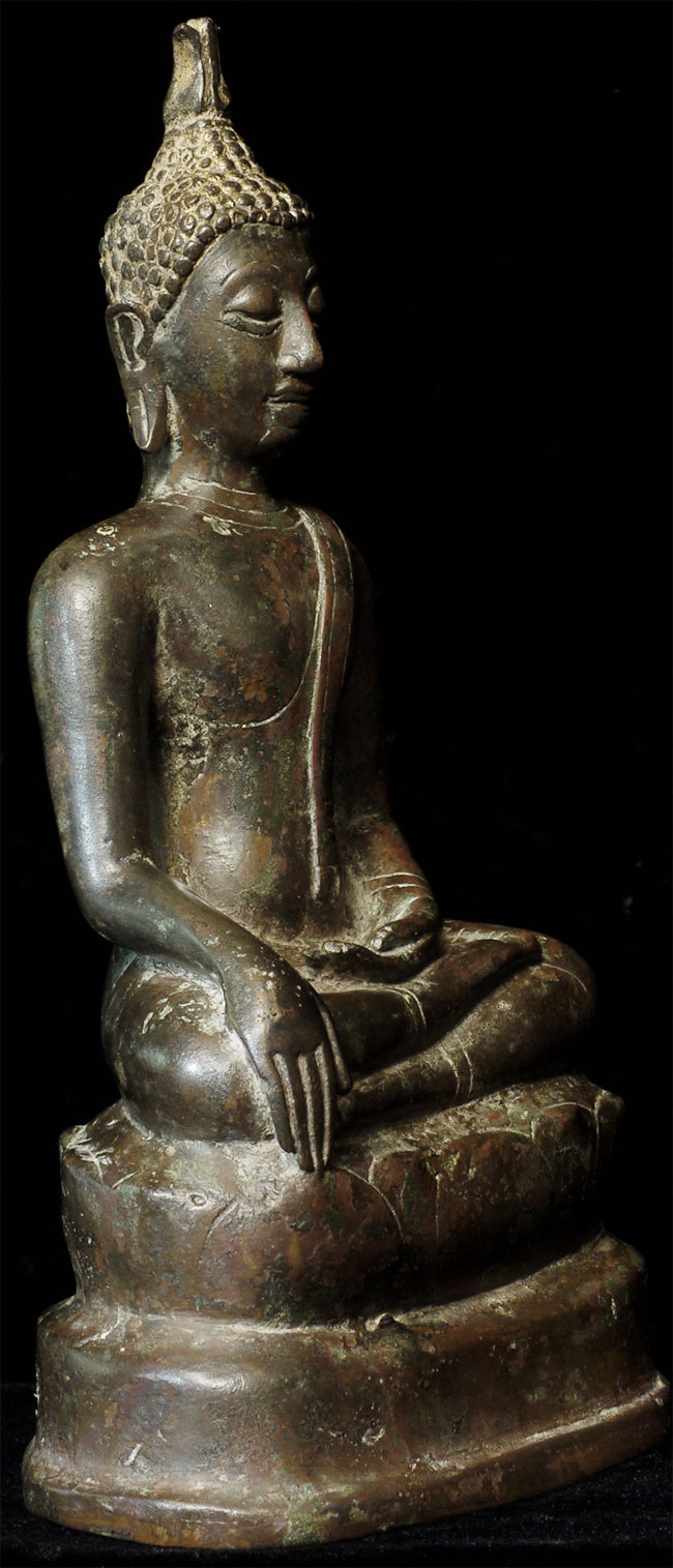 This is a Northern Thai (Lanna) Buddha from the 16th century- it is an excellent example of its type, with especially good casting. , It is from an old Austrian collection. It sits 7 and 5/8 inches tall.