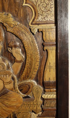 Ganesh plaque created from dozens of pieces of wood-some inlaid and some inked. Probably 50 to 75 years old. Ganesh almost appears to "pop" off of the surface. I've not seen a piece of this type before- beautiful! Large at 23.5" by 34.5".