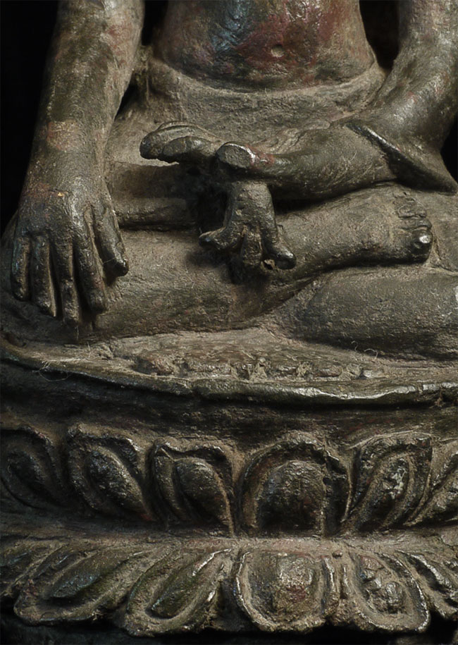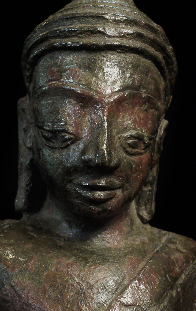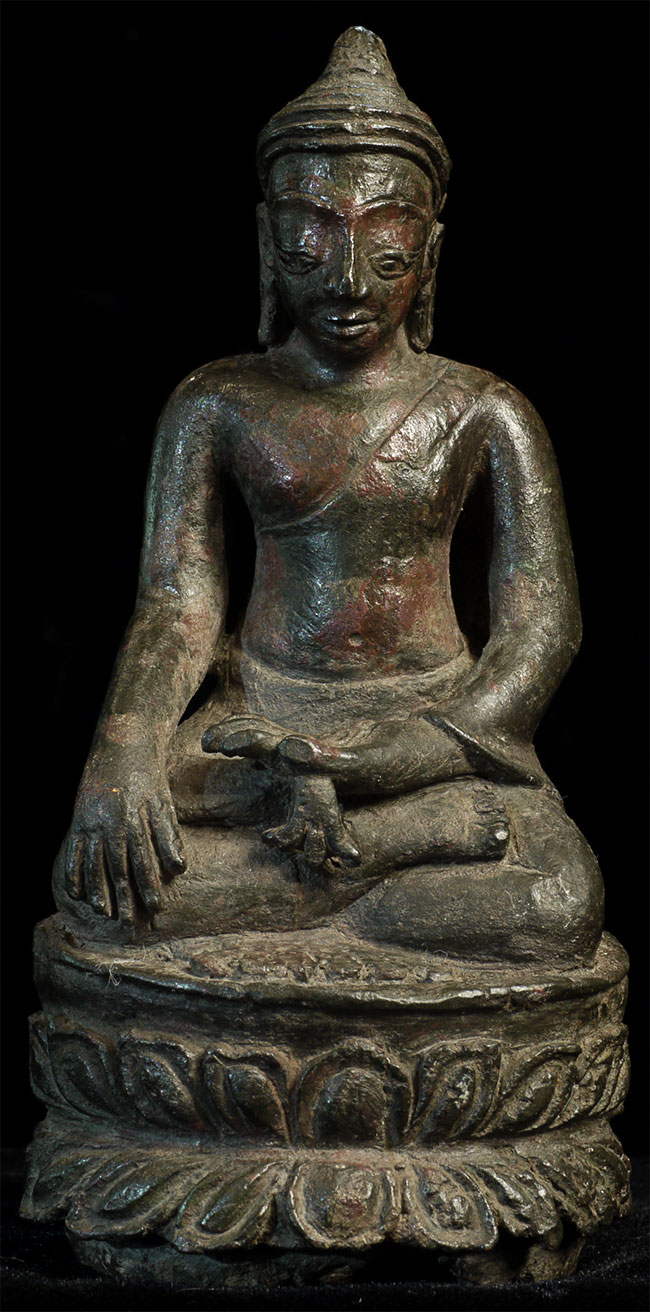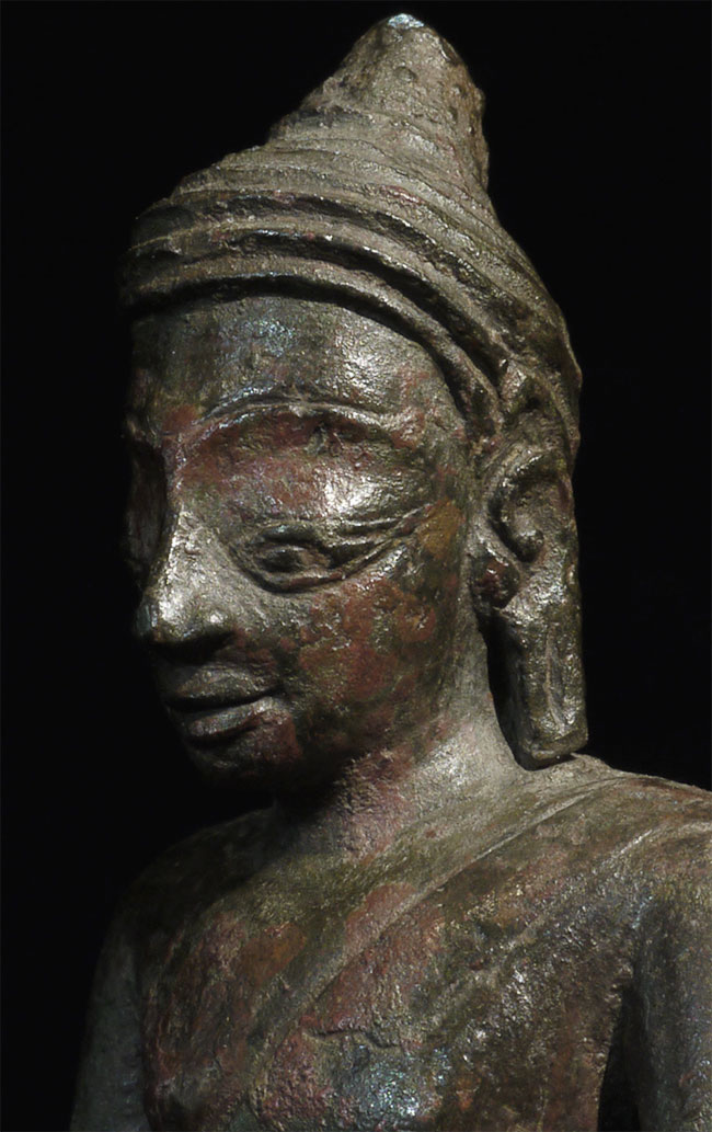 Very special 11/12thC Burmese Pagan style Buddha. Would have probably originally set in to an elborate backplate that depicted stories about the life of the Buddha. I've never seen another quite like it. Sits only 4.5 inches tall, but is larger than life!