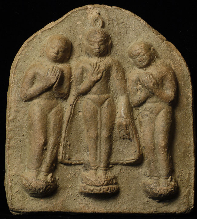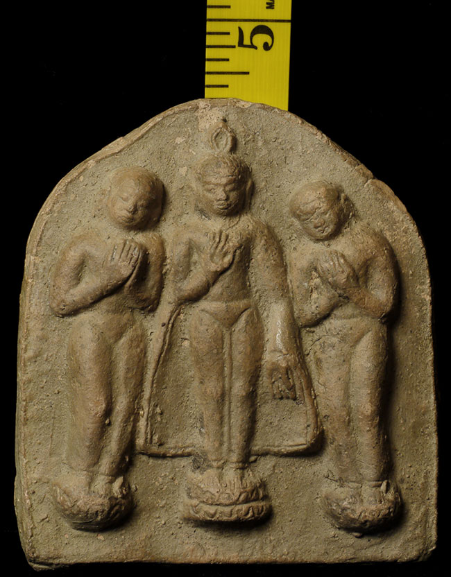 18/19thC or earlier Burmese Buddhist Terracotta Plaque. Large for its type at 4 3/8" tall, 4" wide