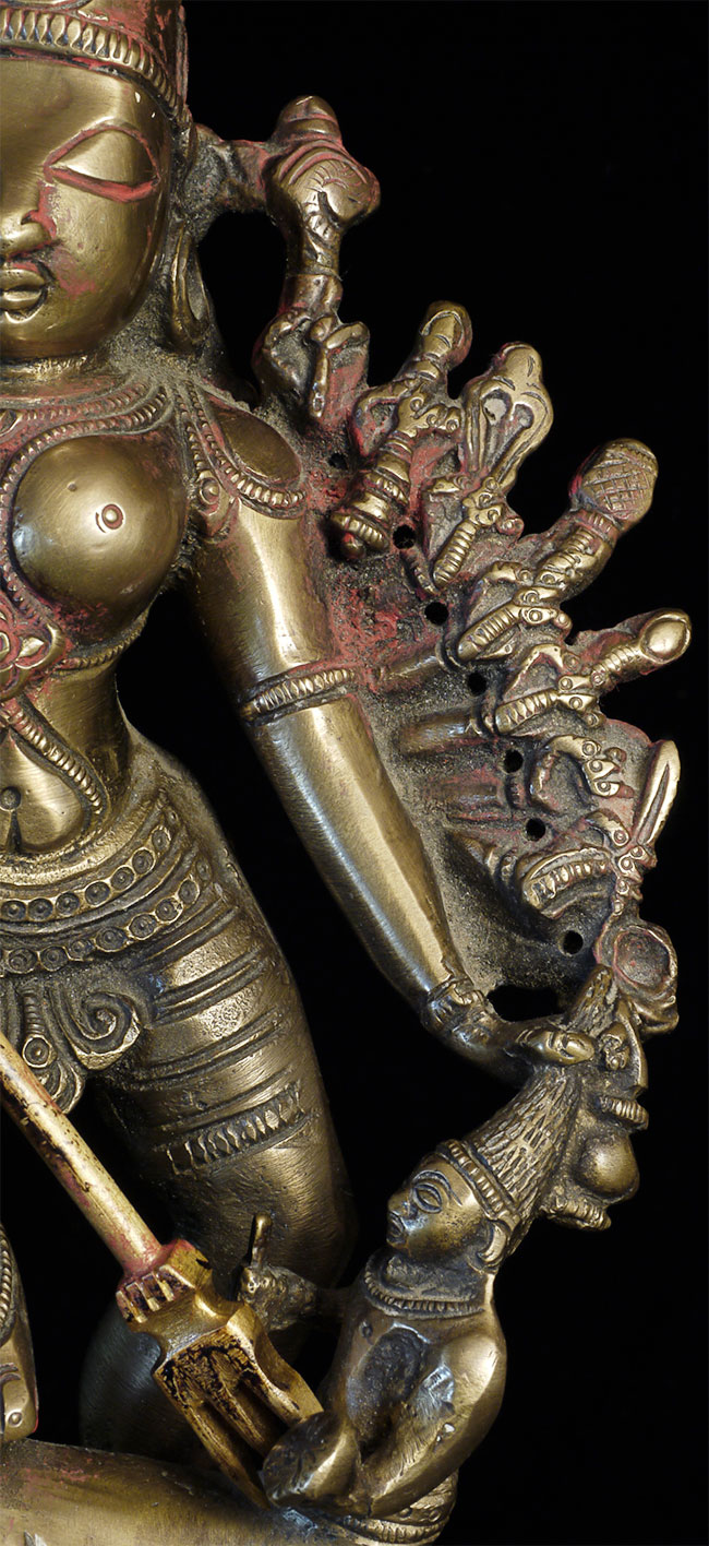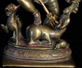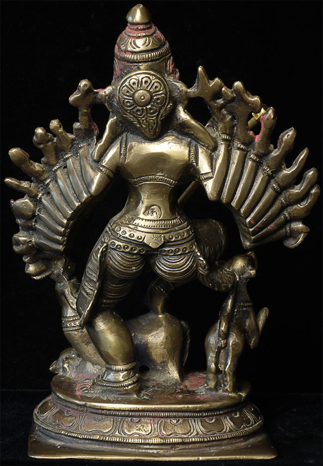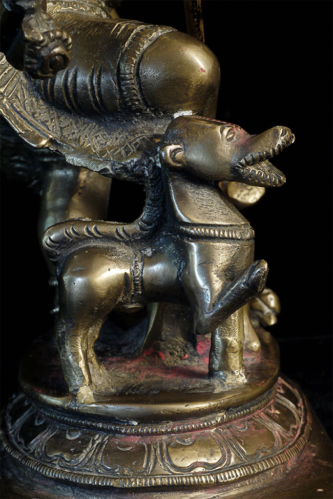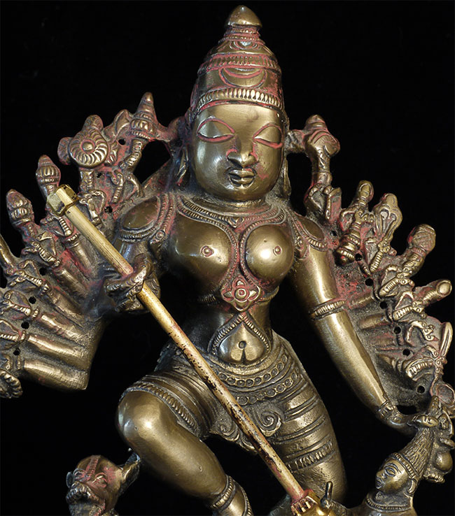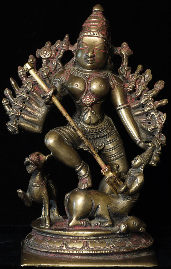 Vintage/old solid cast Indian bronze Durga. Stands powefully at 8" tall, and is quite heavy.