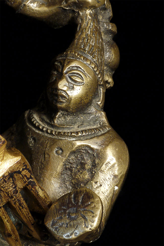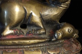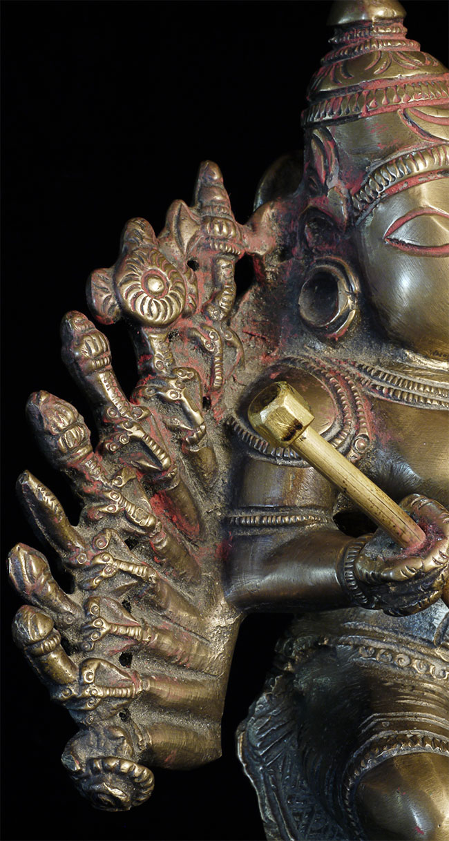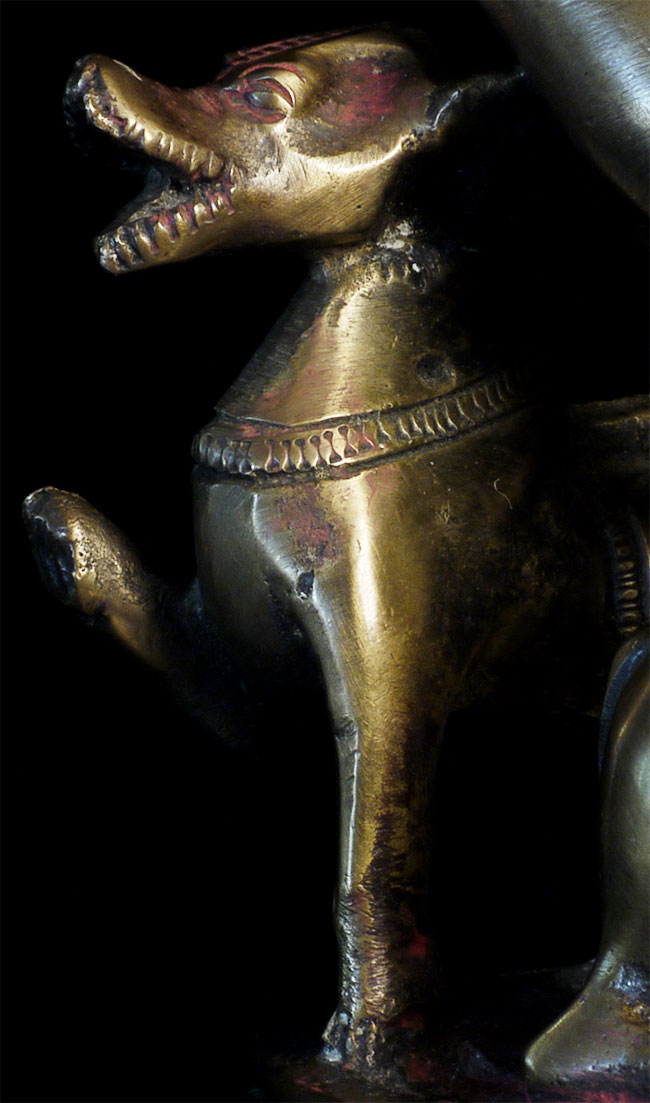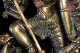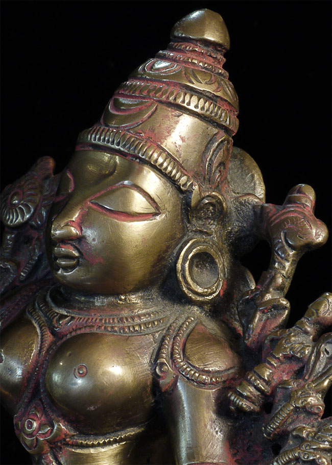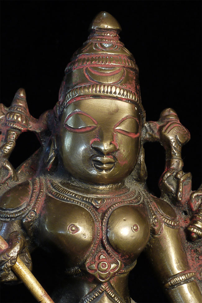 Vintage/old solid cast Indian bronze Durga. Stands powefully at 8" tall, and is quite heavy.
