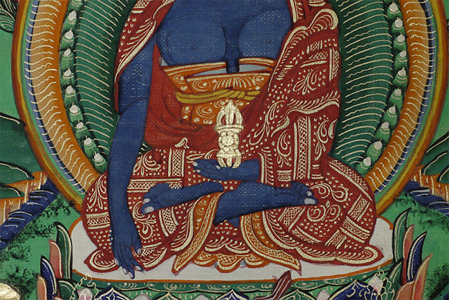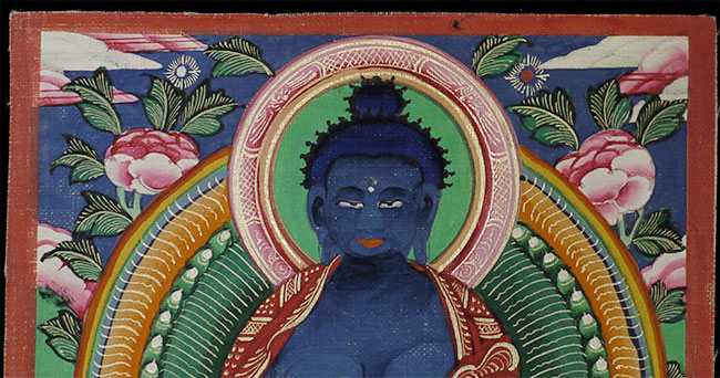 Vibrant vintage Mongolian Thangka measures 6" x 5". Excellent detail and condition.