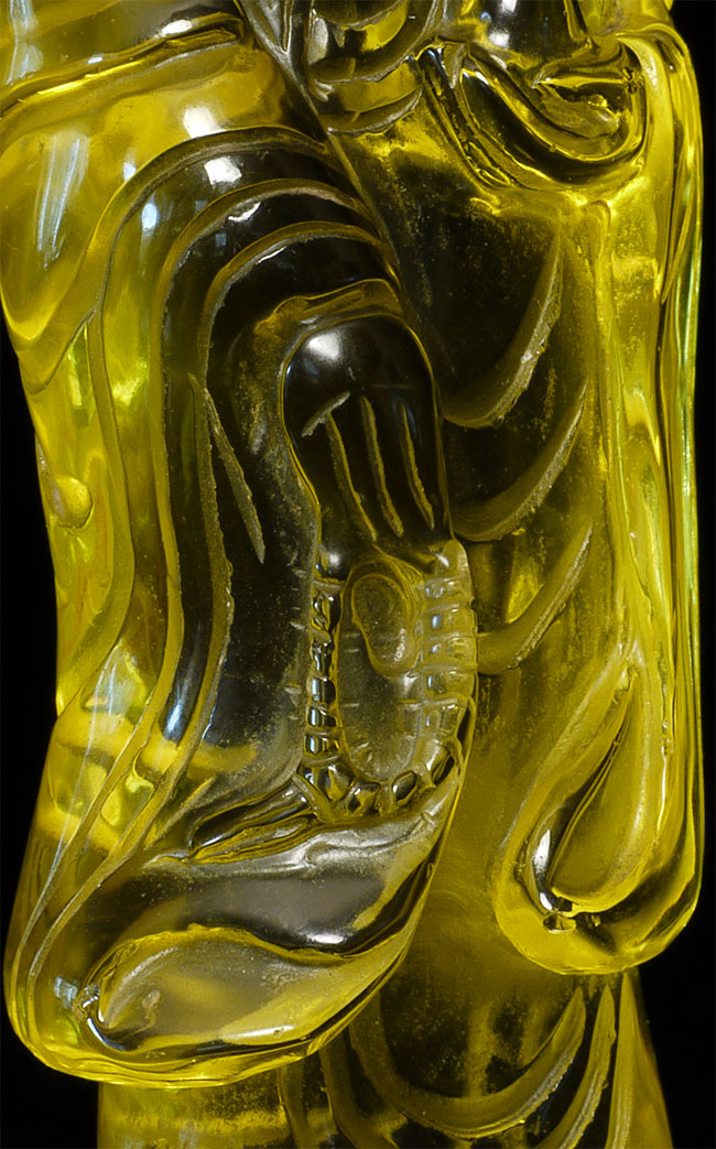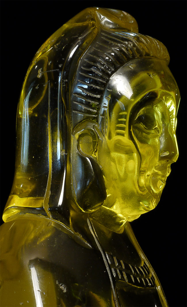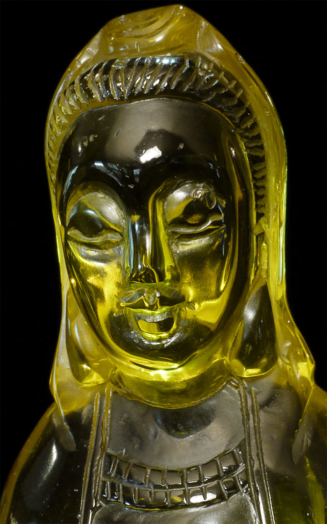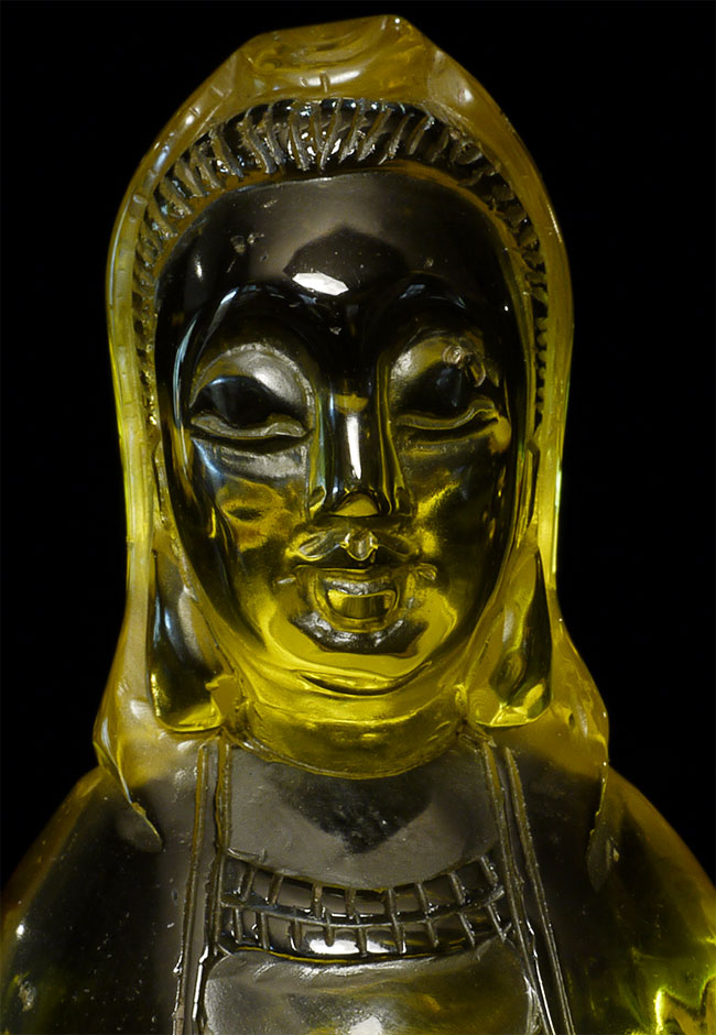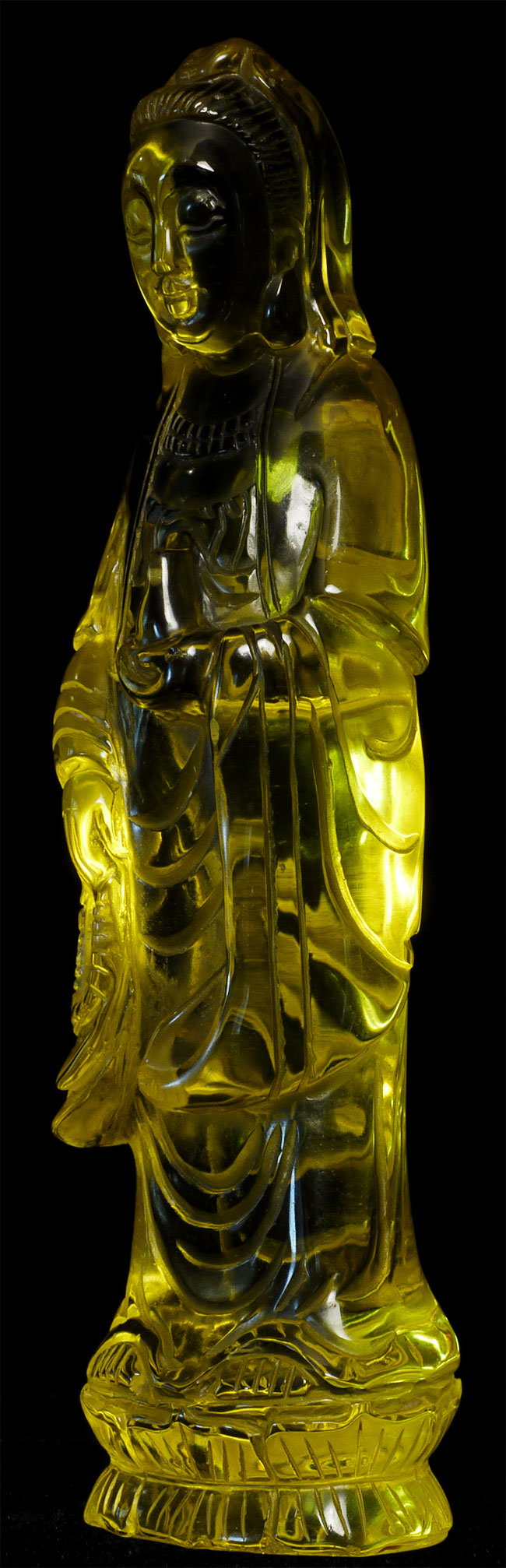 Vintage/old yellow glass Quanyin. Sits 5 1/8" tall