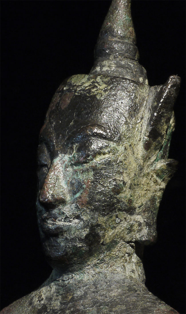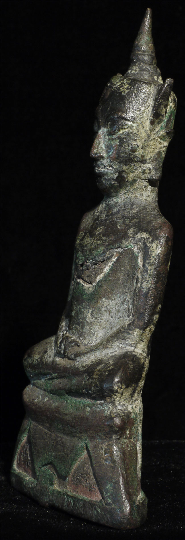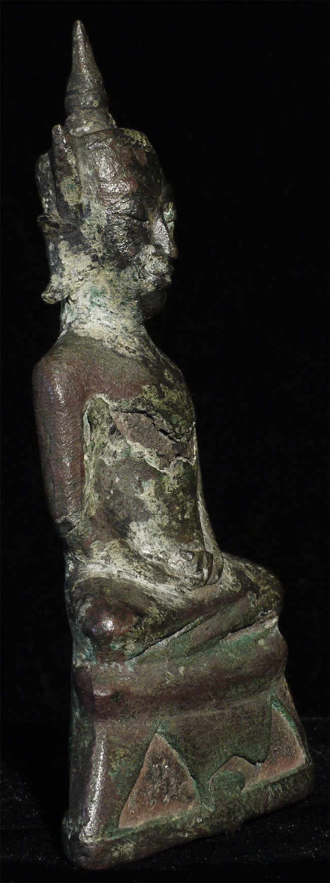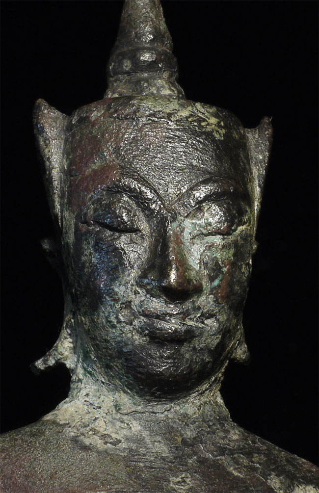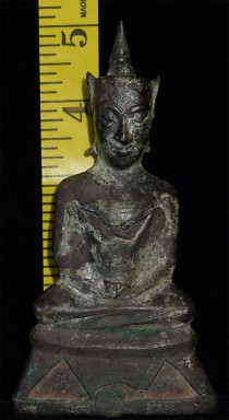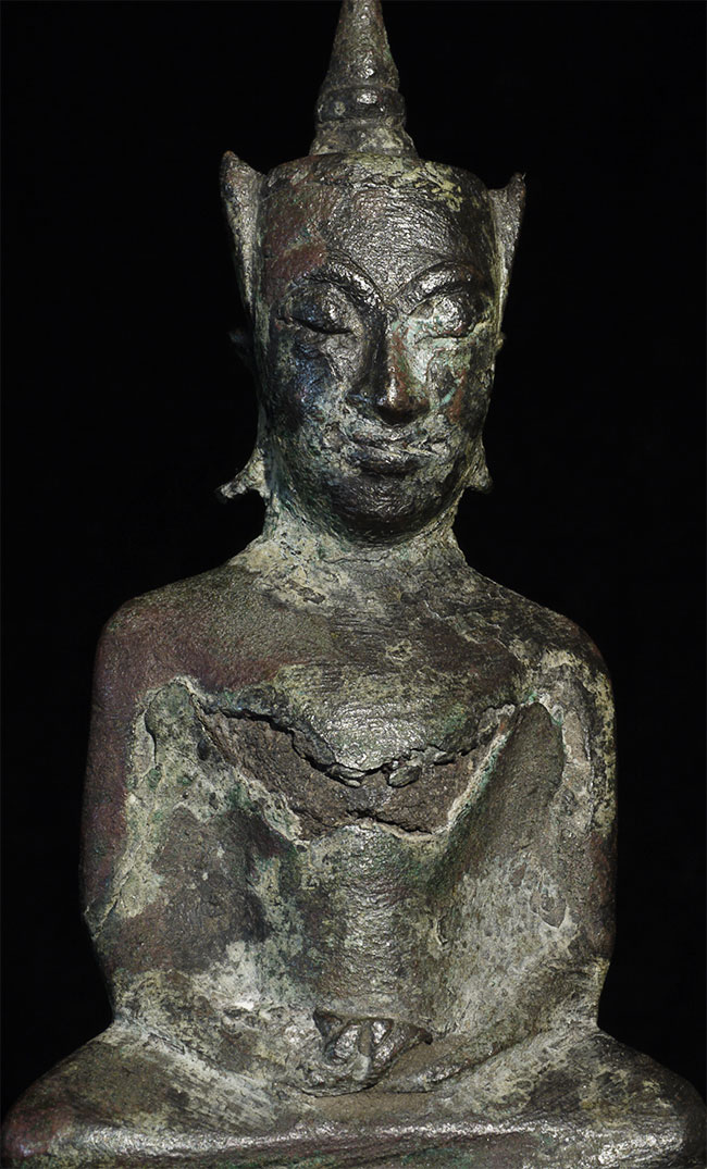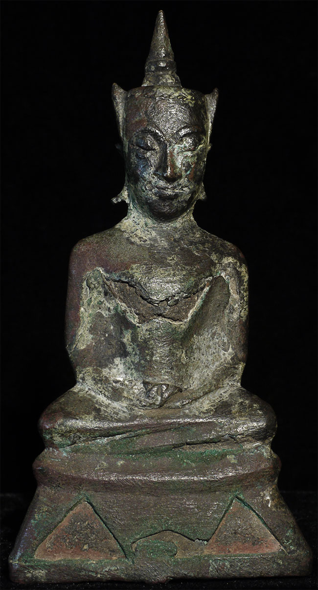 15/16thC provincial Ayuthaya style Thai Buddha in as-shown condition. Sits 4 7/8" tall