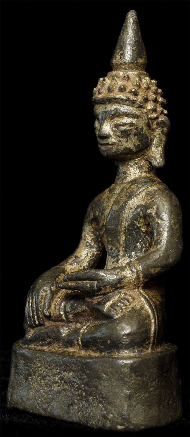 Rare 16thc. or earlier tribal Buddha- probably from the area where Laos Burma, and Southern China all meet. Sits 3.5" tall.