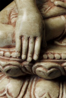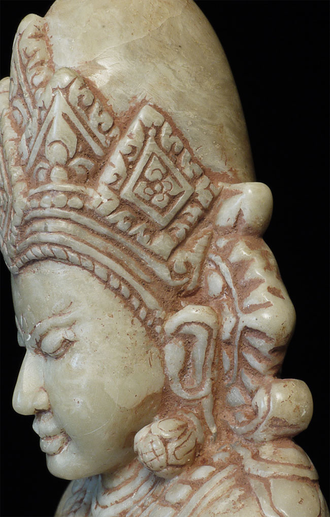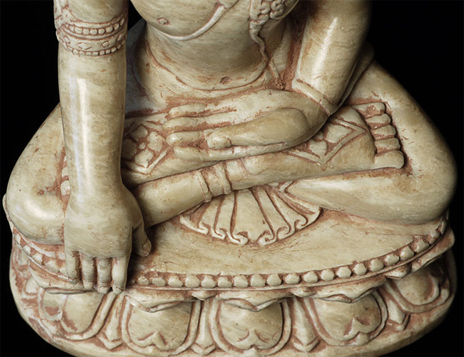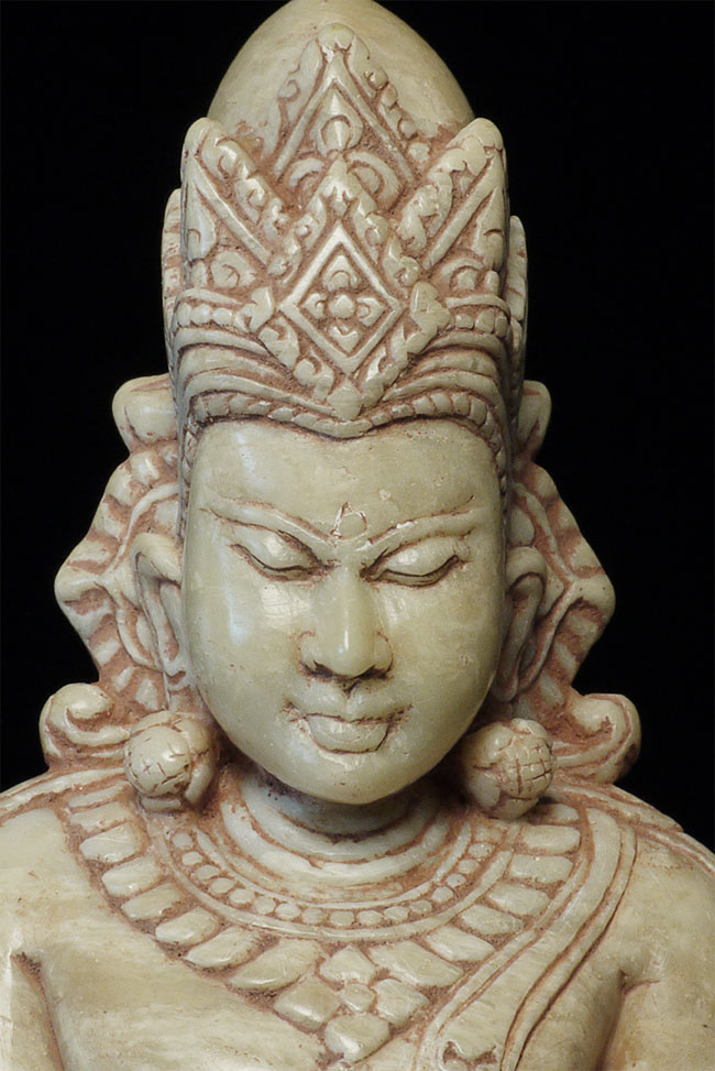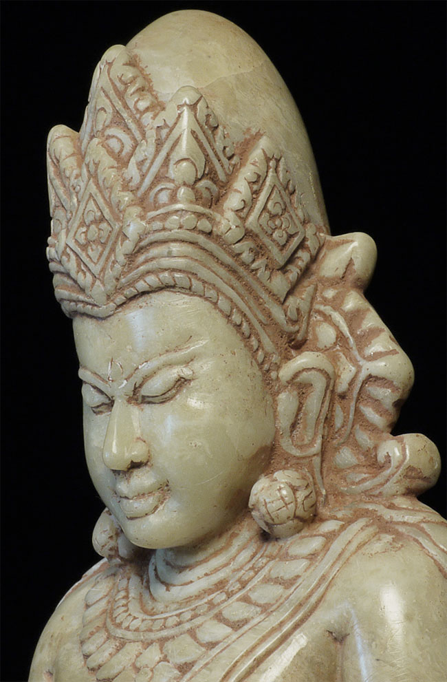 Superb 11-13thC Alabaster Pagan Buddha. Very best of its type you will ever see. From an old family collection, purchased out of Europe. Sits 5.25" tall. Expensive, but for good reason.