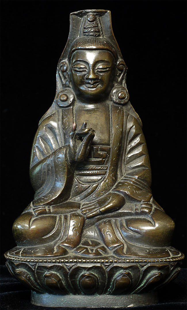 Antique Chinese Bronze Quanyin. Sits happily at 5.5" tall