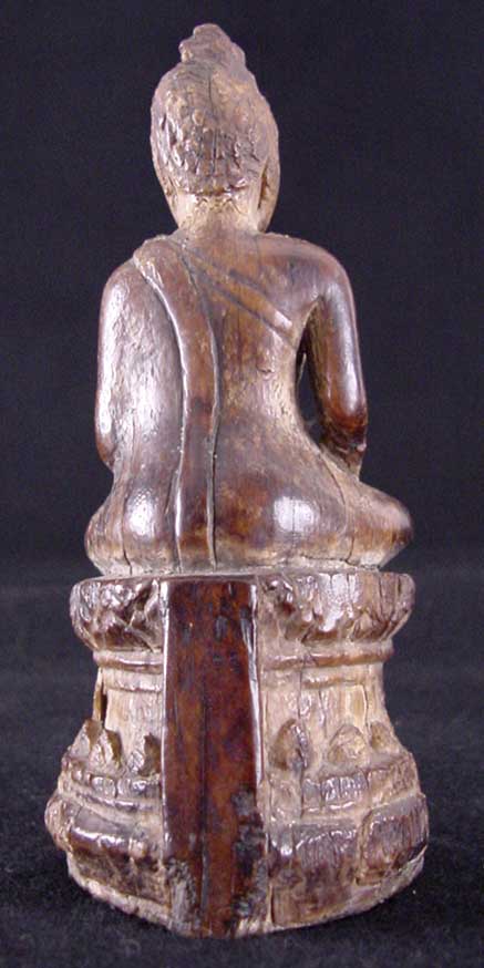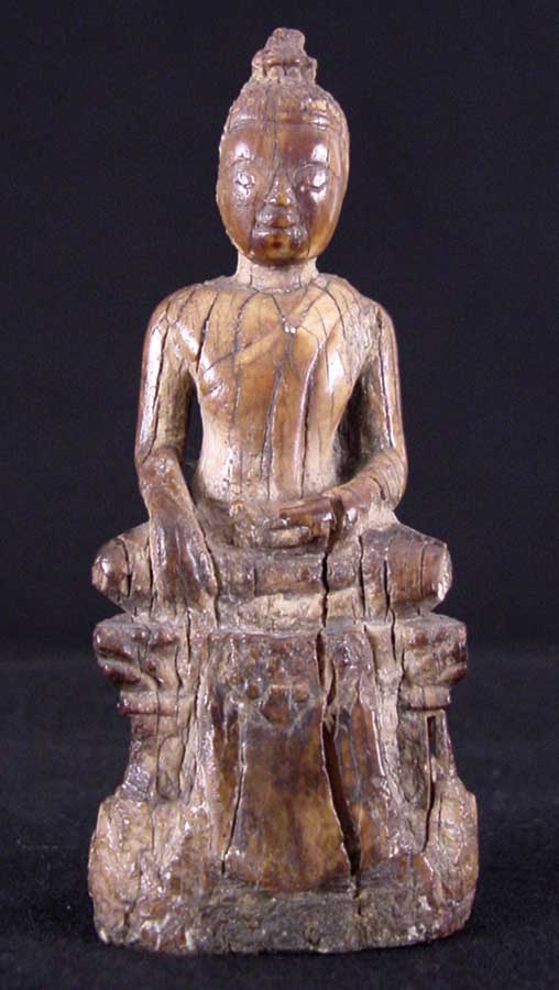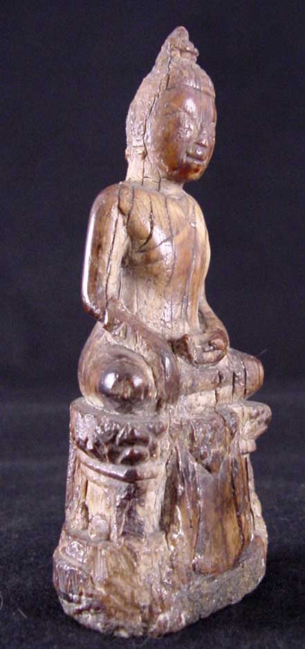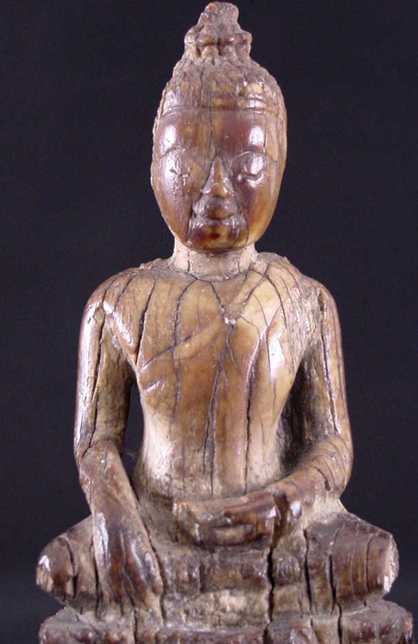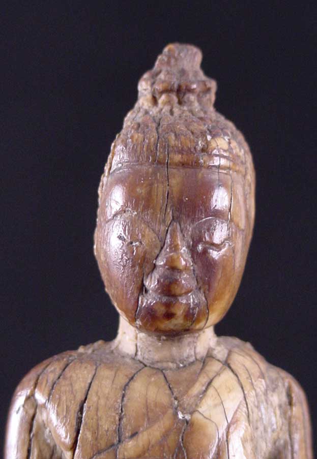 Very early and extremely uncommon Ivory Buddha. It is 17/18th century, and possibly earlier. The wear and feel of this piece are first rate: I've not had anything like this one before.Four and 1/8 inches high. Obvious wear , as seen in the photos.