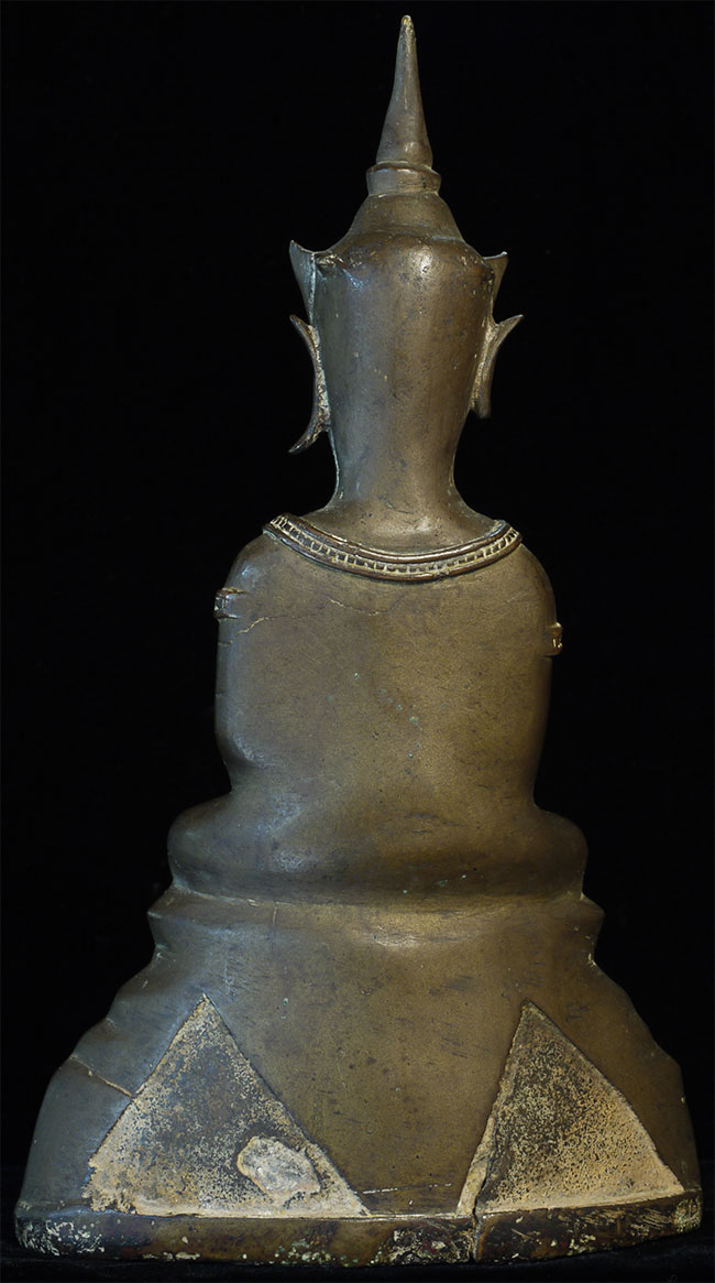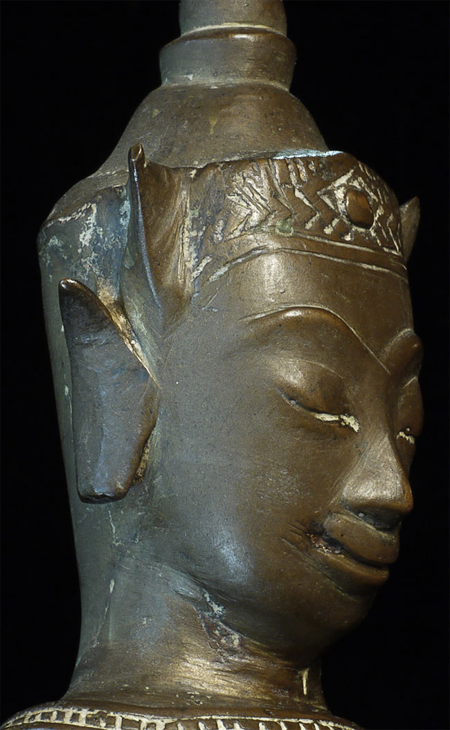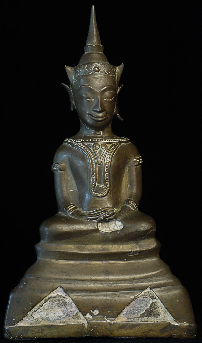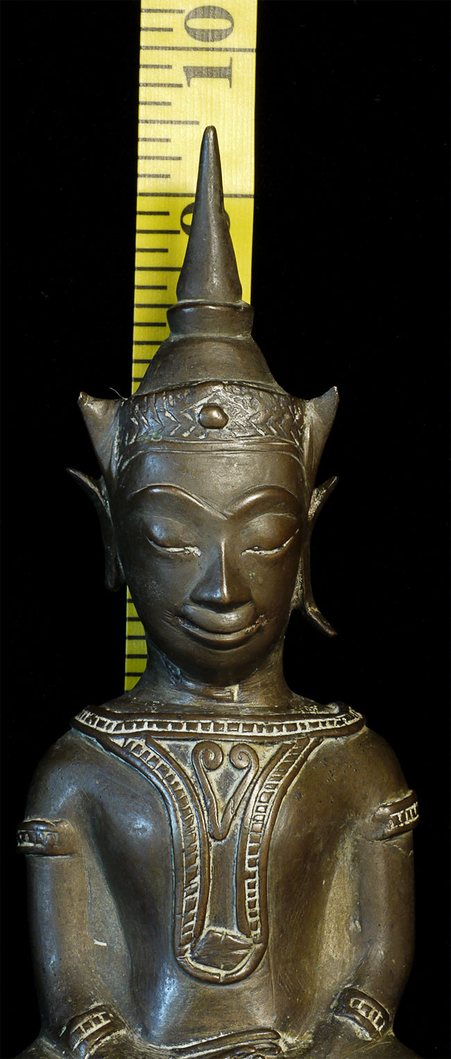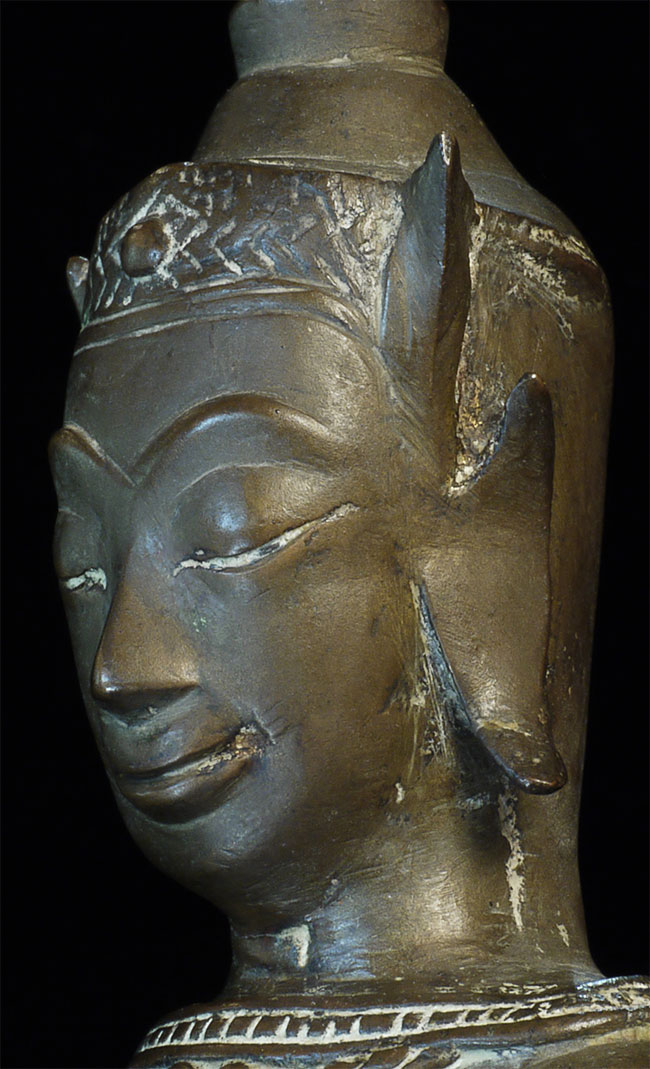 Wonderful 16/17thC Thai Ayuthaya Buddha. Loss of one ear lobe, plus original casting flaw near one leg. Great expression! Sits a good size at 9.5" tall.