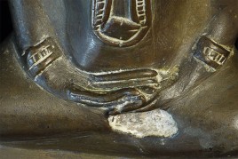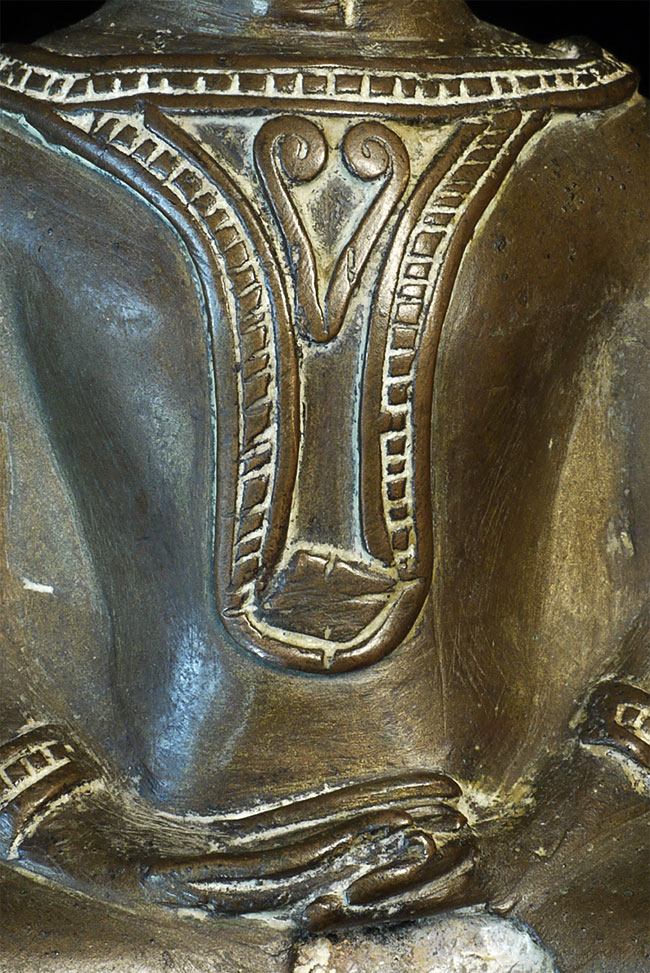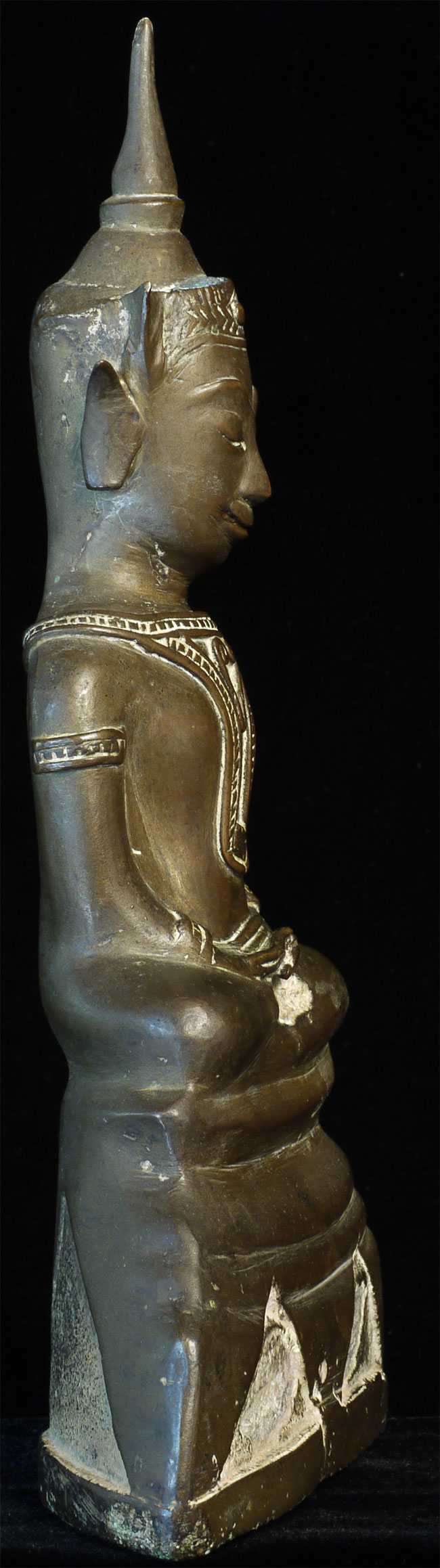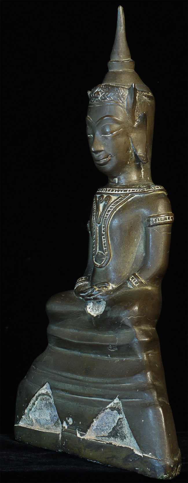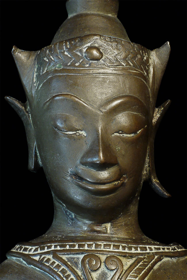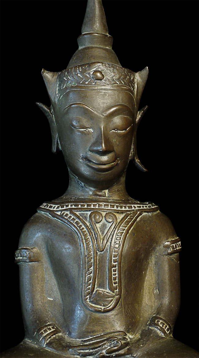 Wonderful 16/17thC Thai Ayuthaya Buddha. Loss of one ear lobe, plus original casting flaw near one leg. Great expression! Sits a good size at 9.5" tall.