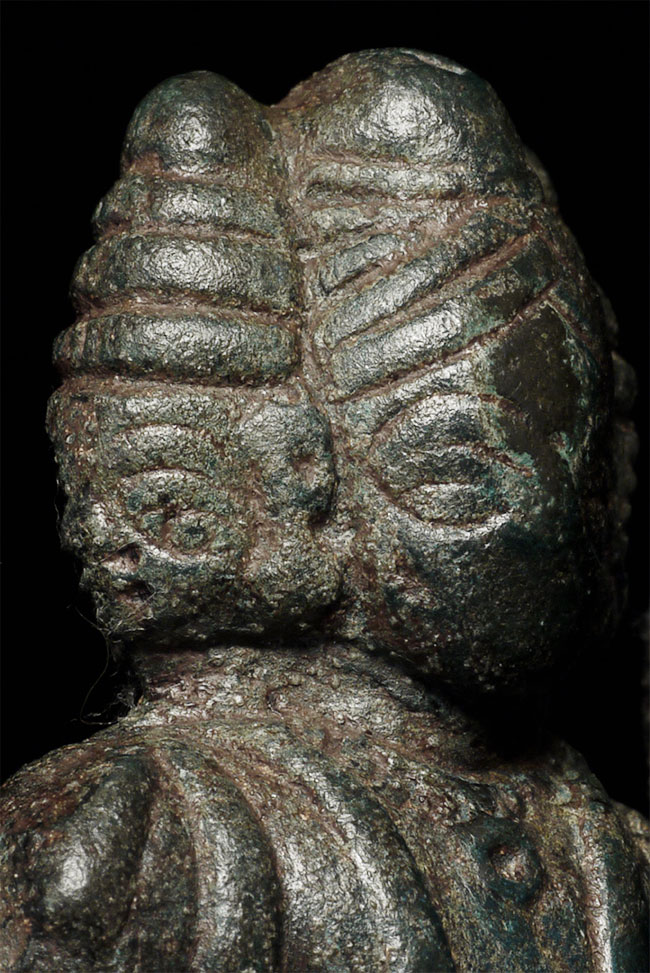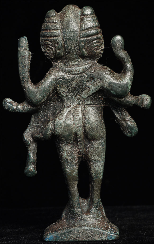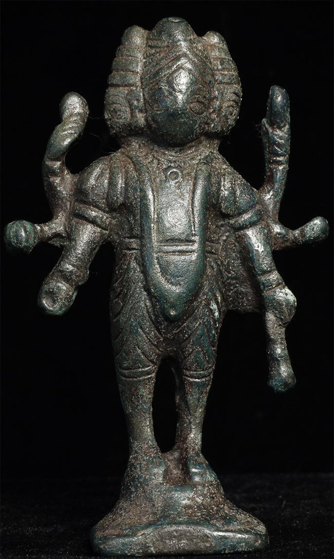 Four face Hindu figure with significant ritual wear. Stands 3.5" tall