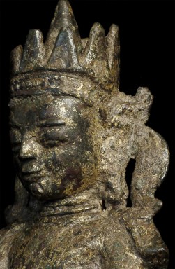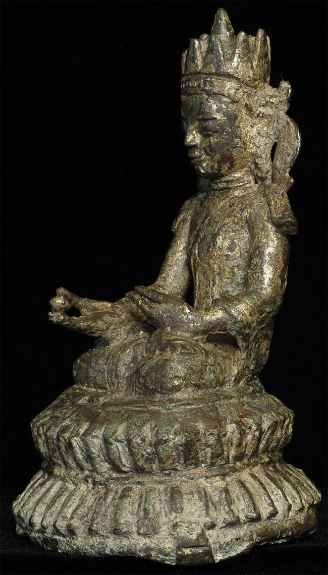Arakan bronzes of this type are scarce, and crowned examples especially so—only two or three comparable pieces have been personally encountered by the consignor over decades of collecting. This figure represents a strong, well-preserved example of an important and early Burmese sculptural tradition, and would make a notable addition to any serious collection of Southeast Asian Buddhist art.