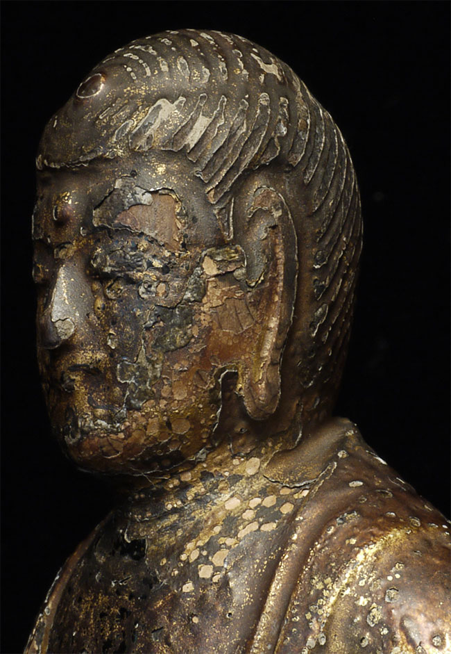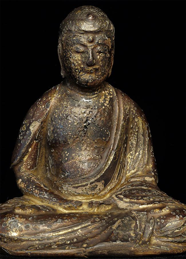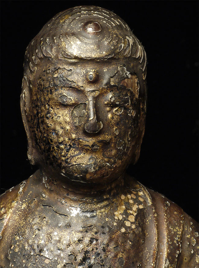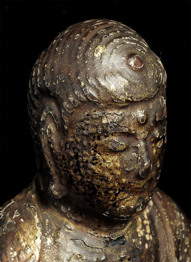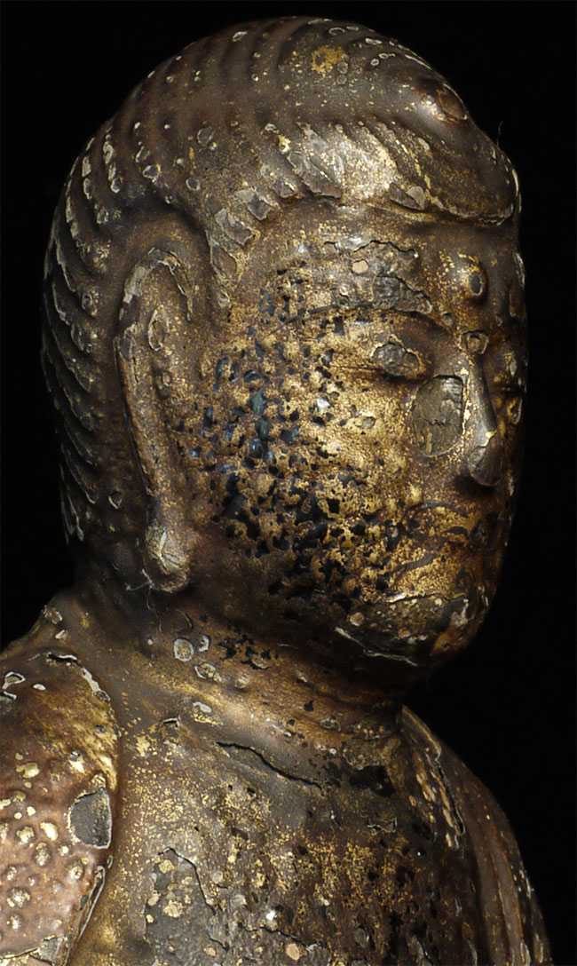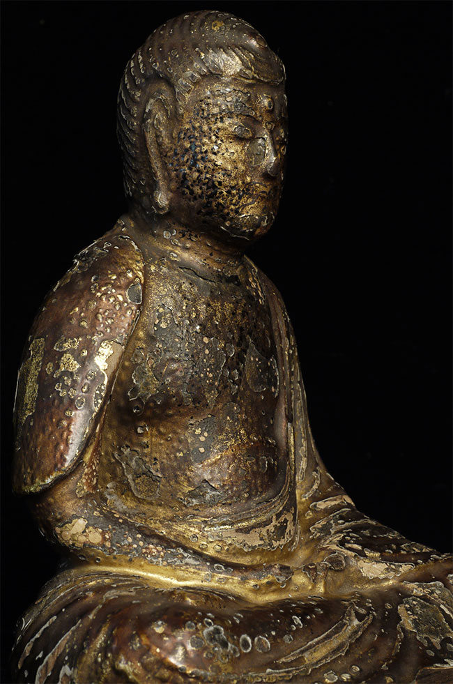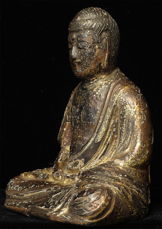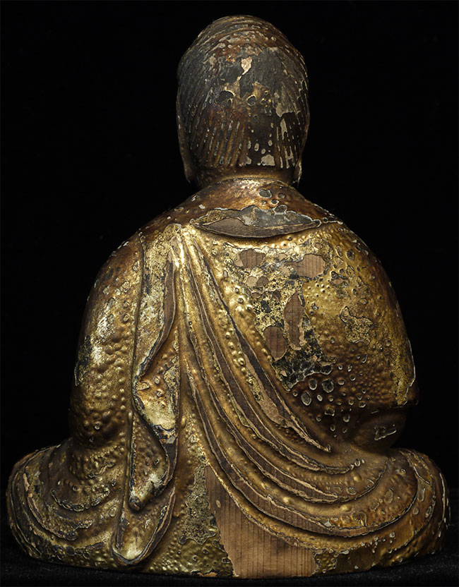 Very old Japanese wooden Buddha sits at 4.5" tall.