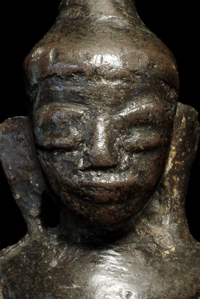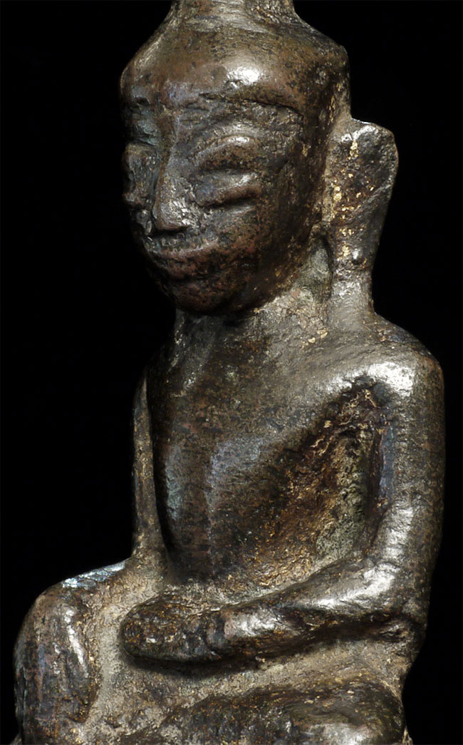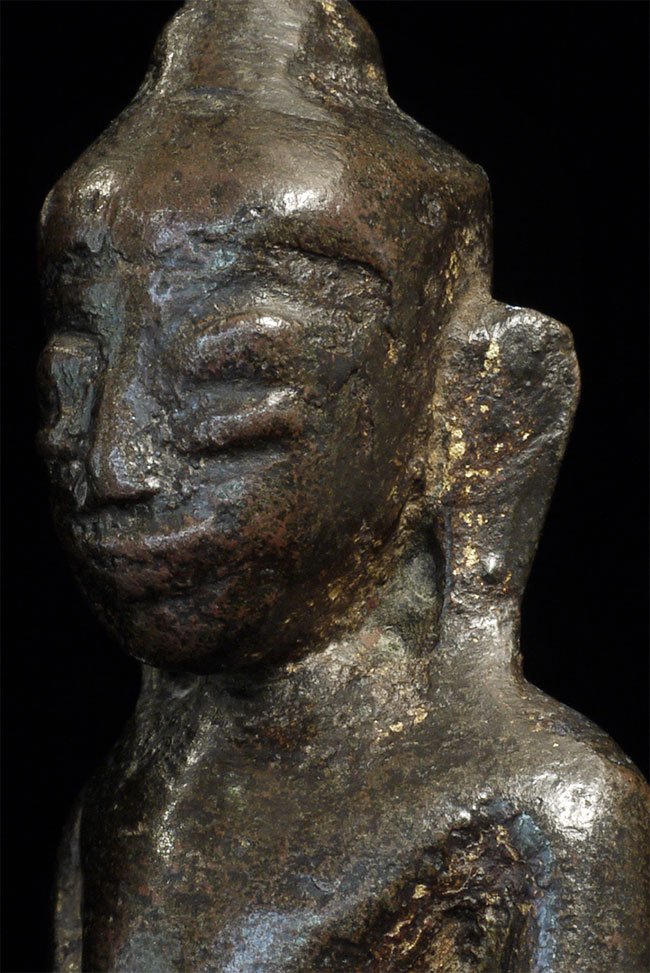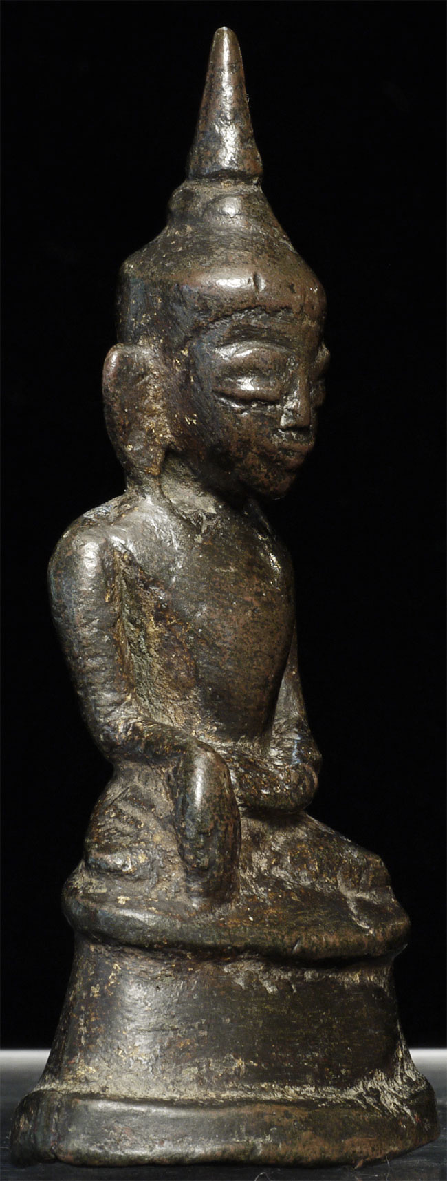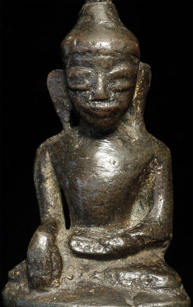 Delightful 17/18thC Burmese Mon Bronze Buddha. Sits 3 7/8" tall.
