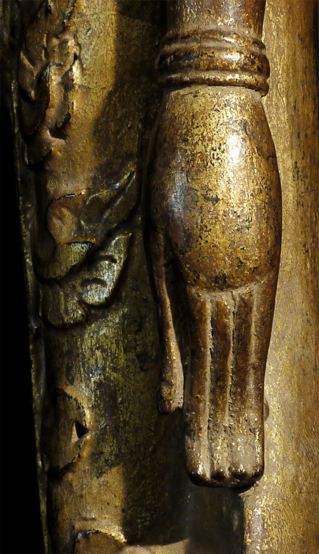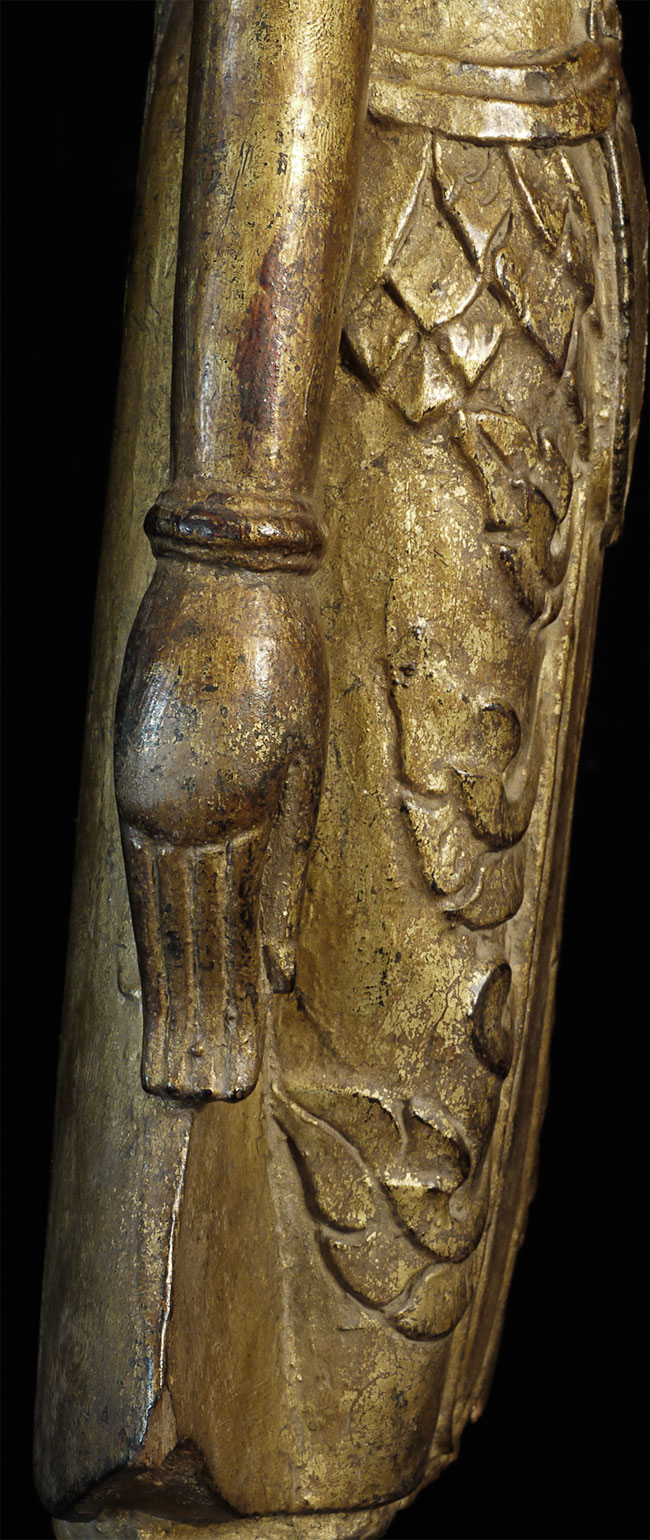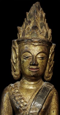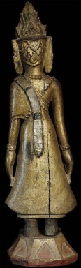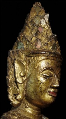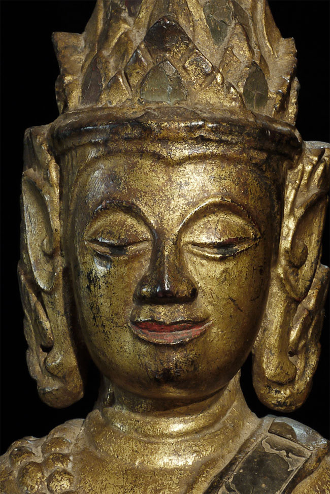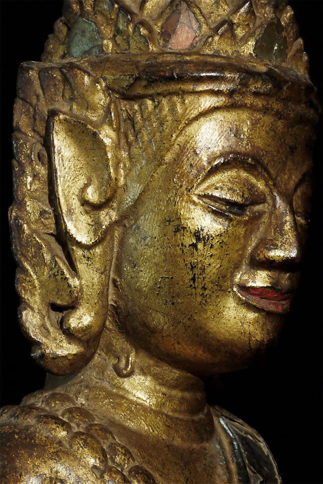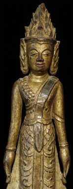 Delightful antique standing Arakan Buddha. Minor loss and possibly reattached to the base, but overall outstanding in every way. Stands 16.75" tall