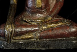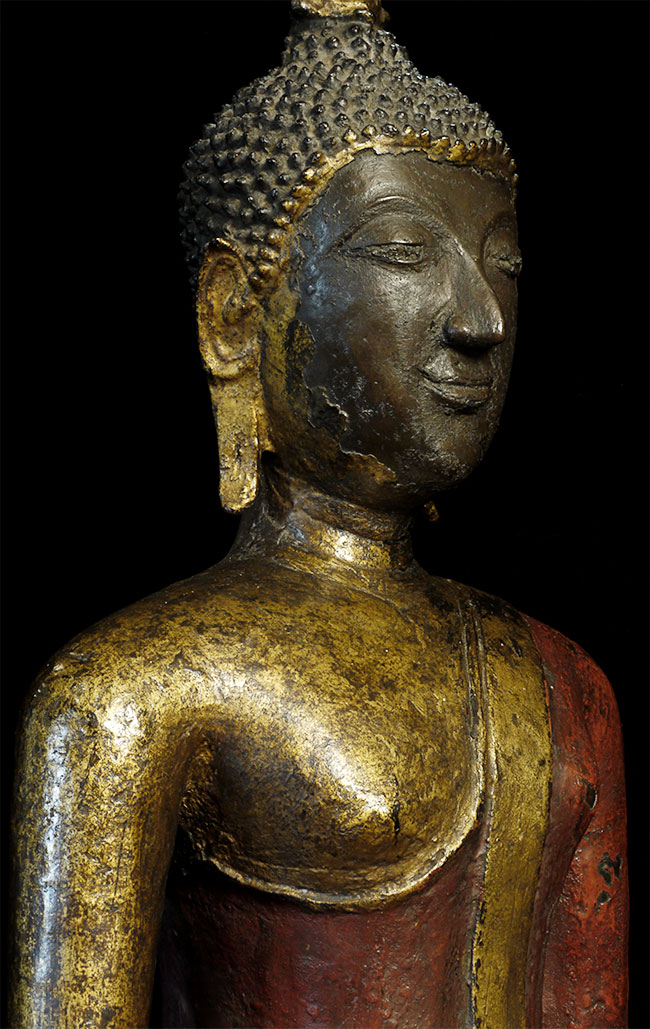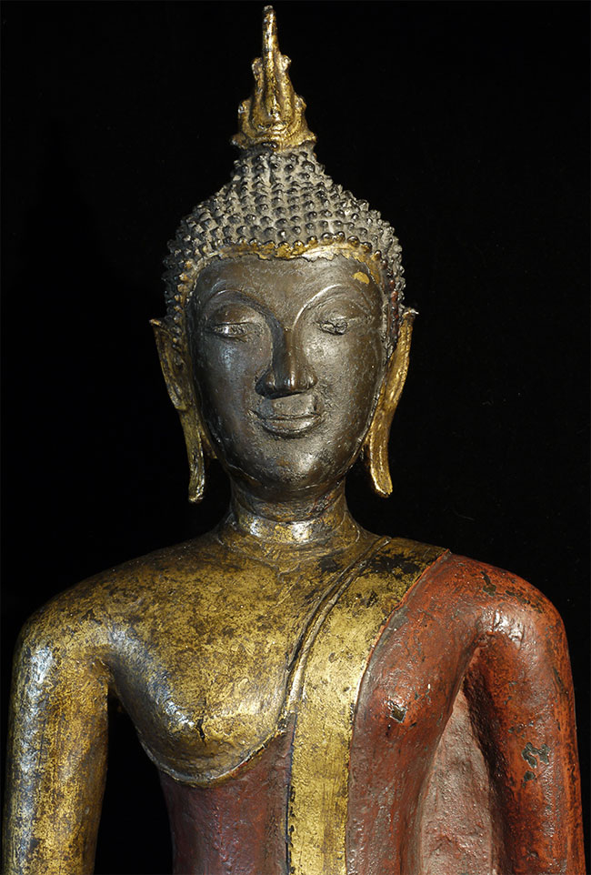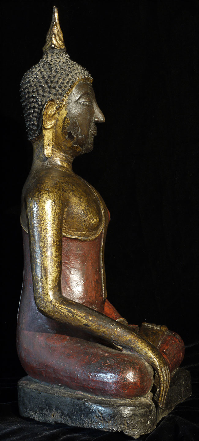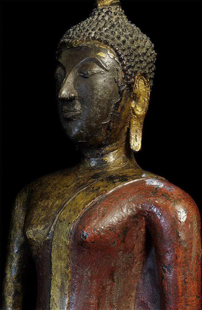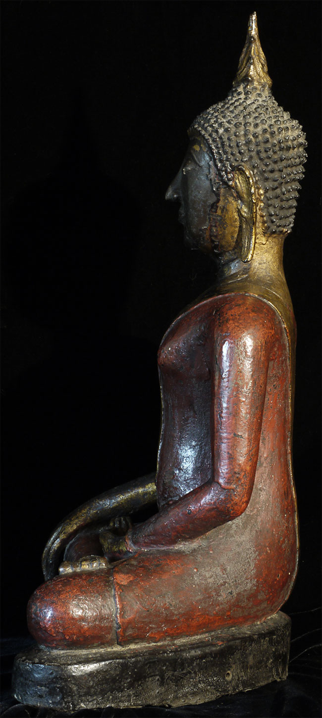 Magnificent 19th century Northern Sukothai Thai Buddha. Large and heavy at 16.75" tall. Rare type-sensitivly modeled face, well cast, and in outstanding condition. 15" at widest point of base. Oxford TL test verifying dating will be included. Far higher quality in both sculpting and casting than the vast majority of 19th Thai bronze Buddha images on the market. A personal favorite.
