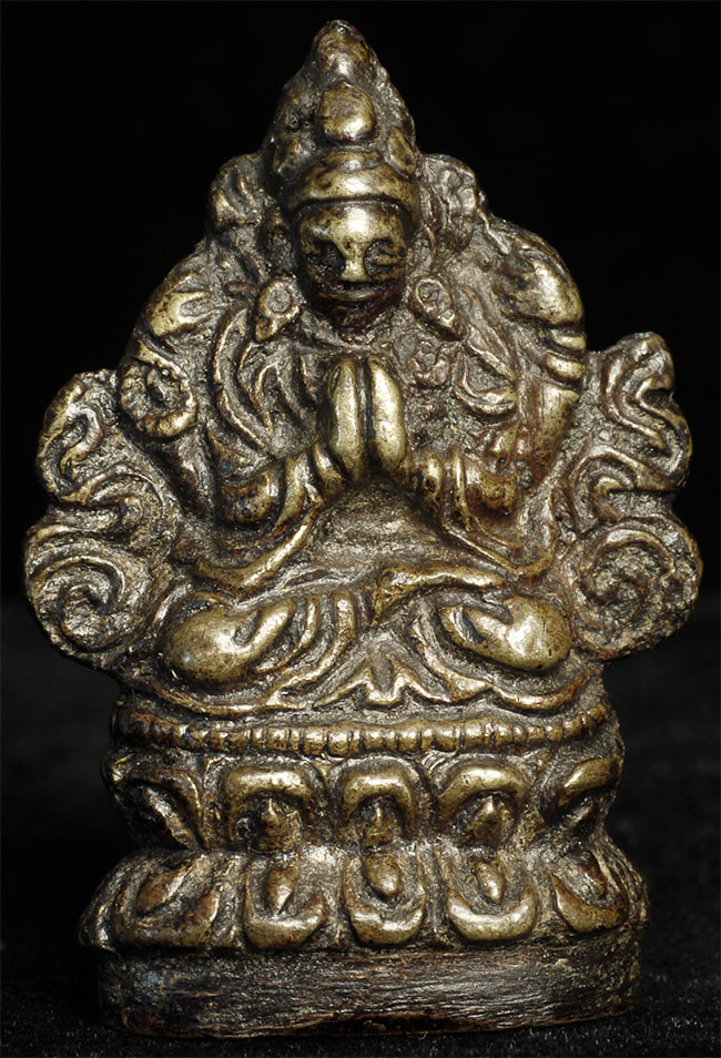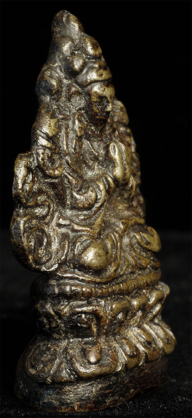 Antique Miniature Tibetan (?) or other Himalayan bronze Bodhisattva in deep concentration. It looks to have good age. I have not had a piece of this type before. I bought it many years ago as part of a collection of miniature Buddhas that were collected in the 1970's. Sits 1.75" tall, and solid cast.