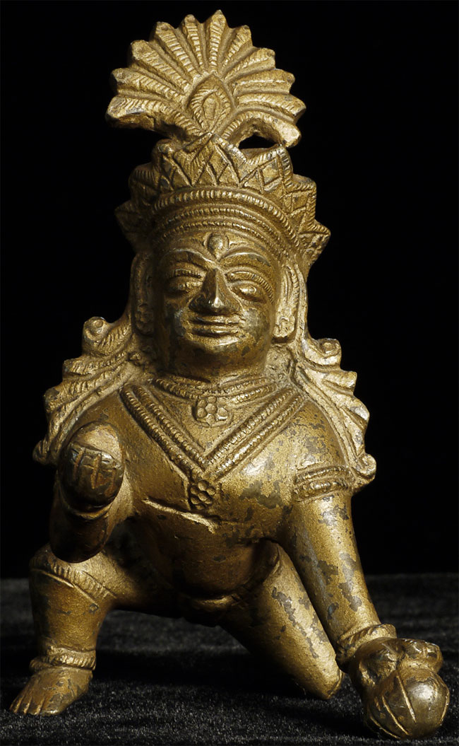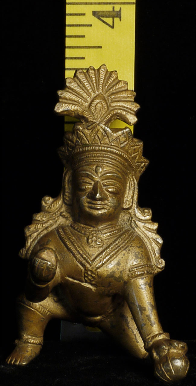 Vintage/antique Indian Baby Krishna with his butterball. 3.5 inches tall