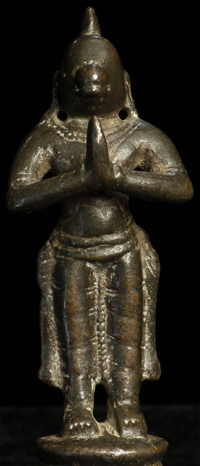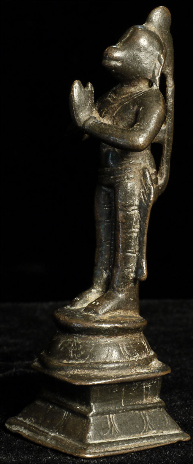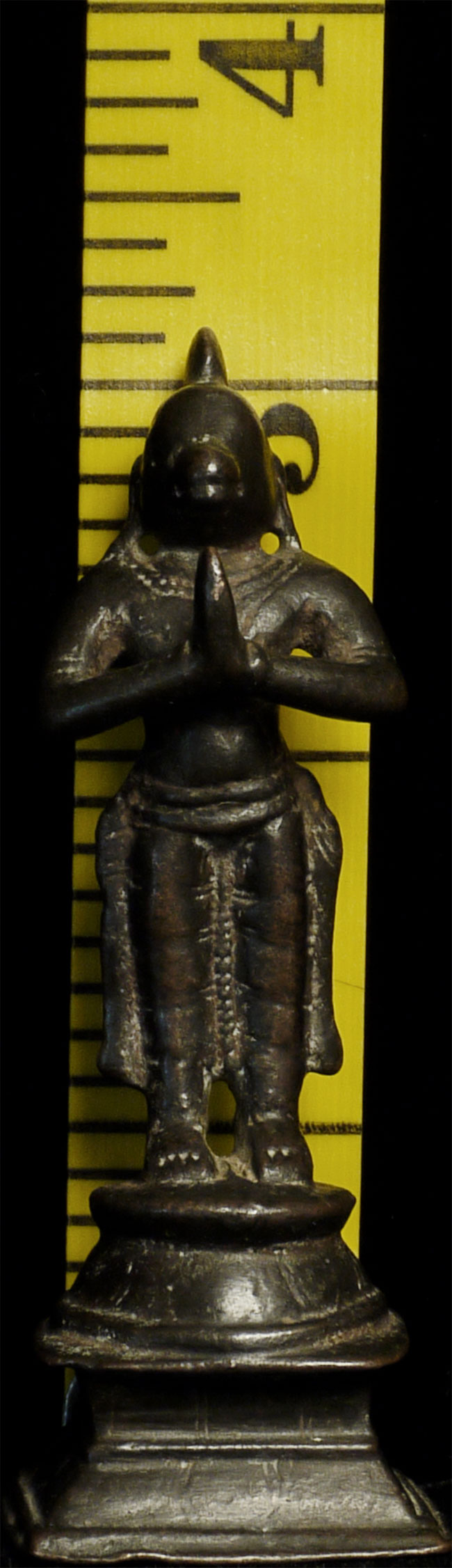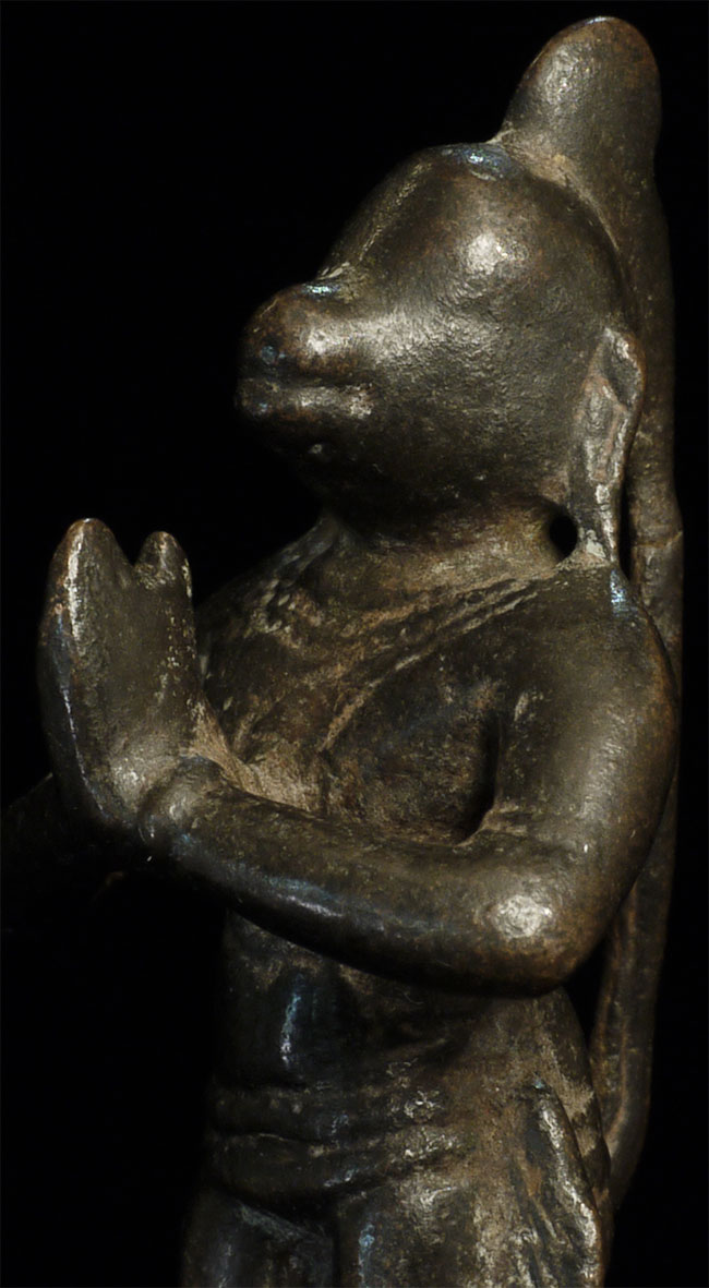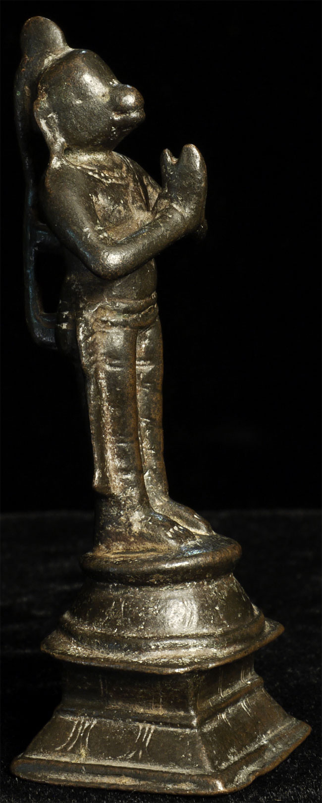 Small antique Hanuman is 3 1/8 inches tall. Serene countenance.