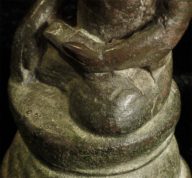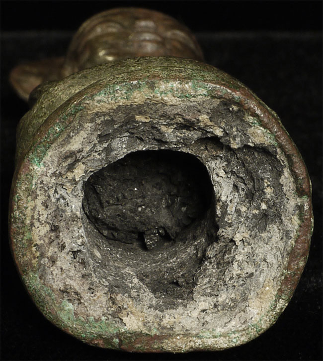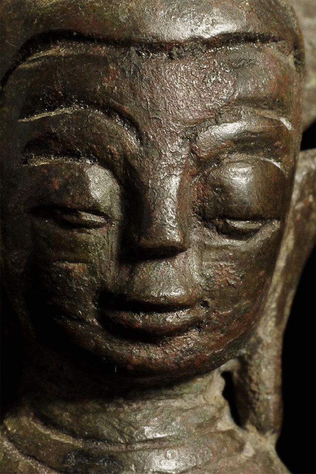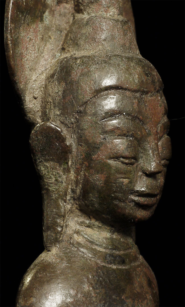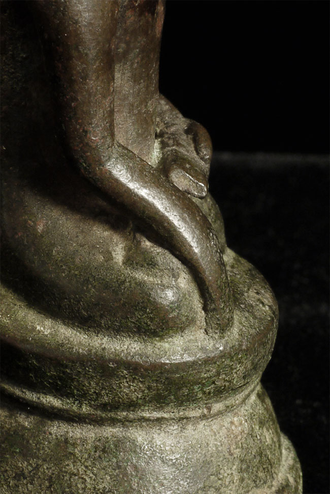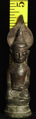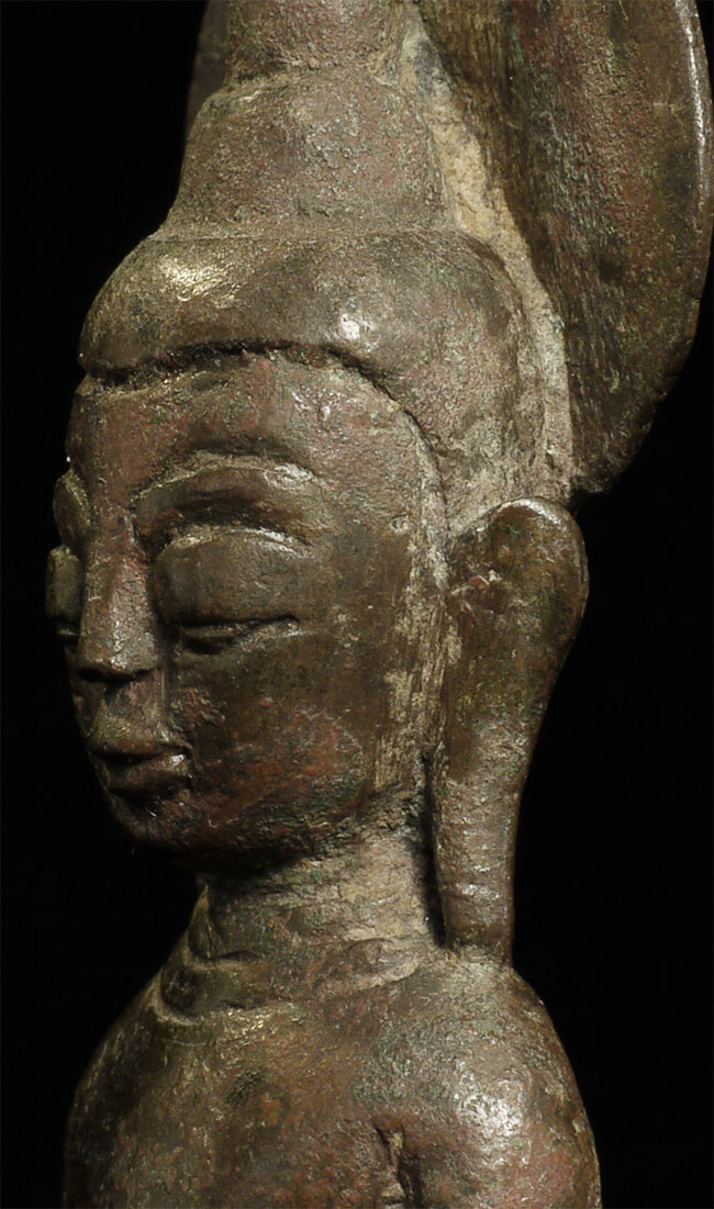 18thC Burmese bronze Buddha under a stylized Bodhi tree. Sits happily at 4.5 inches tall.
