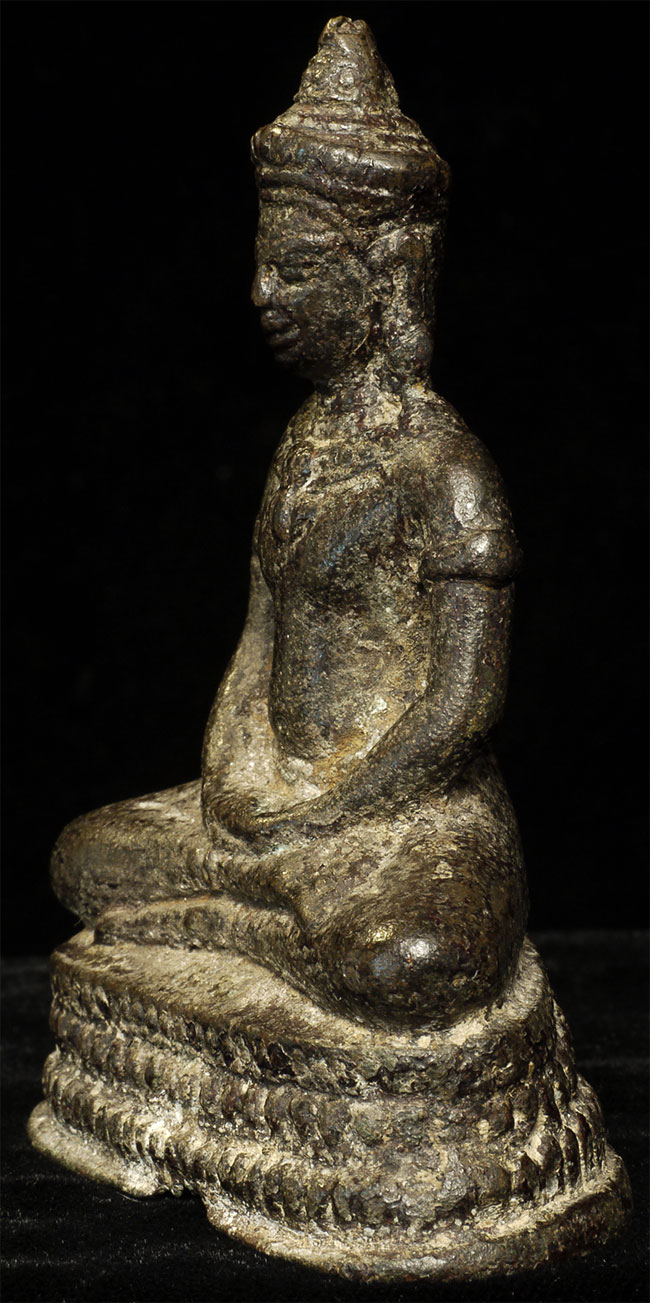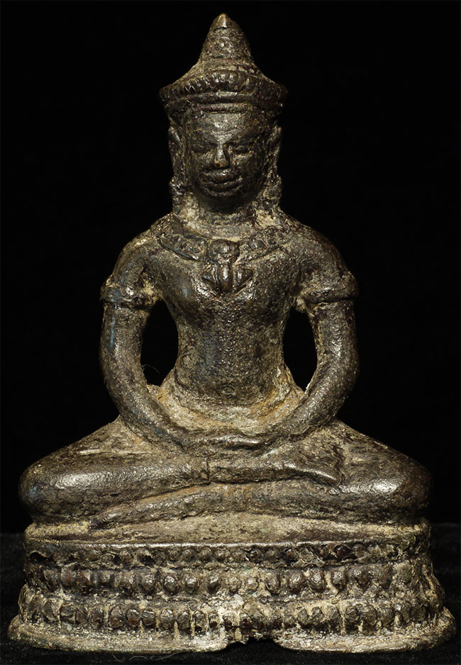 14/15thC Cambodian Bronze Buddha. Sits 3.5" tall
