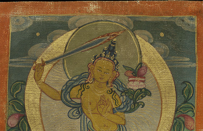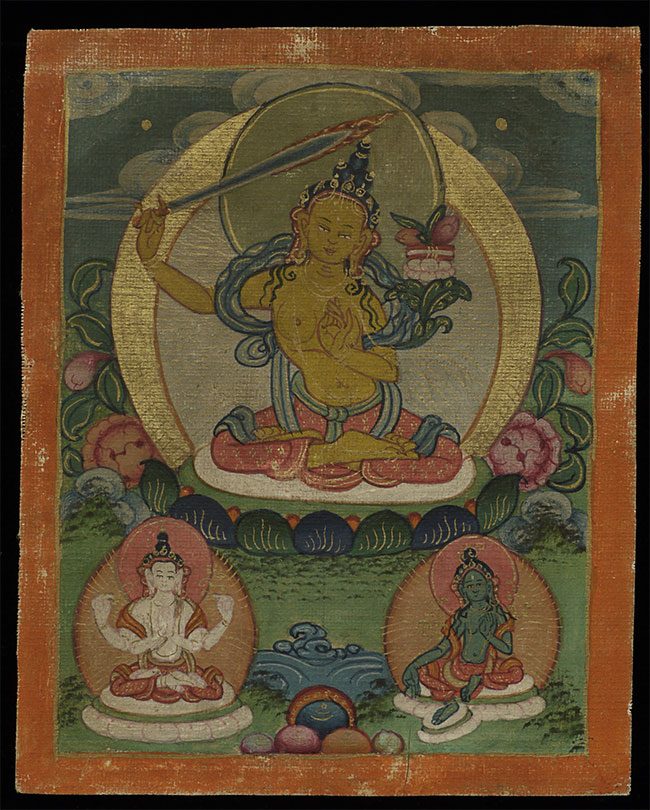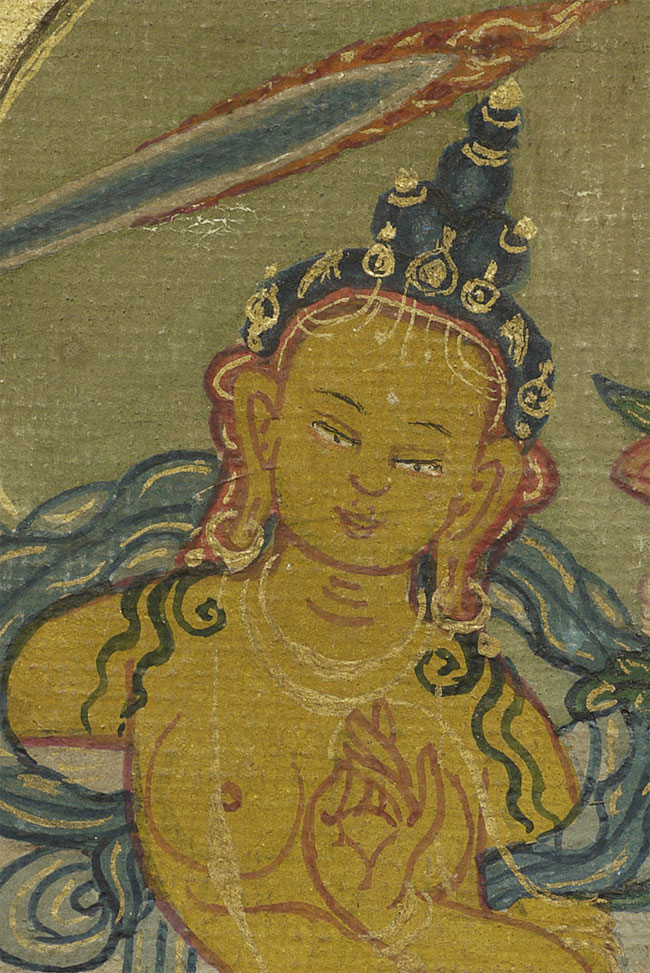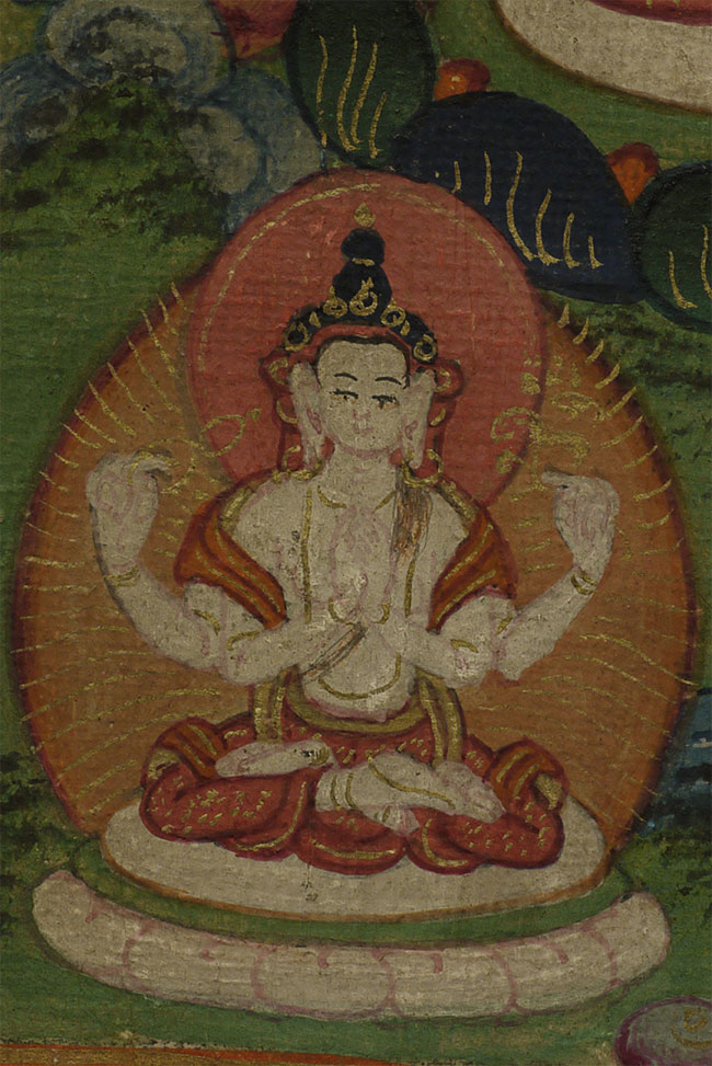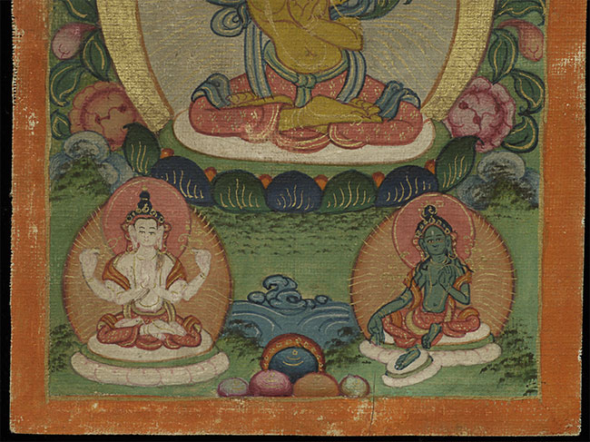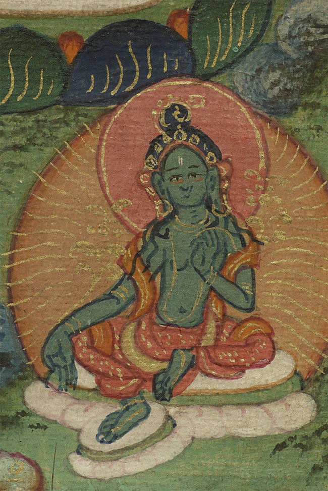 Fine small antique Mongolian Thangka measures 3 1/8" x 4"
